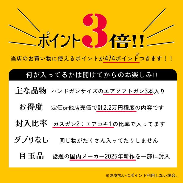 [エアガンJP2026 新春福袋] ポイント3倍 定価/通常価格合計2.2万円以上 1.58万円 ガスガン 2丁 エアガン 1丁 福袋 (新品)の販売ページ|エアガン.jp