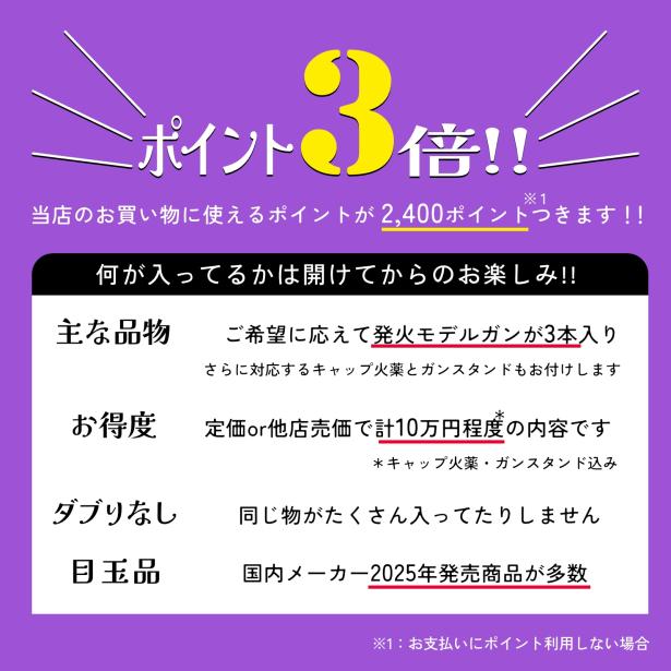 [エアガンJP2026 新春福袋] ポイント3倍 定価/通常価格合計10万円以上 8万円 モデルガン 3丁 福袋 (新品)の販売ページ|エアガン.jp