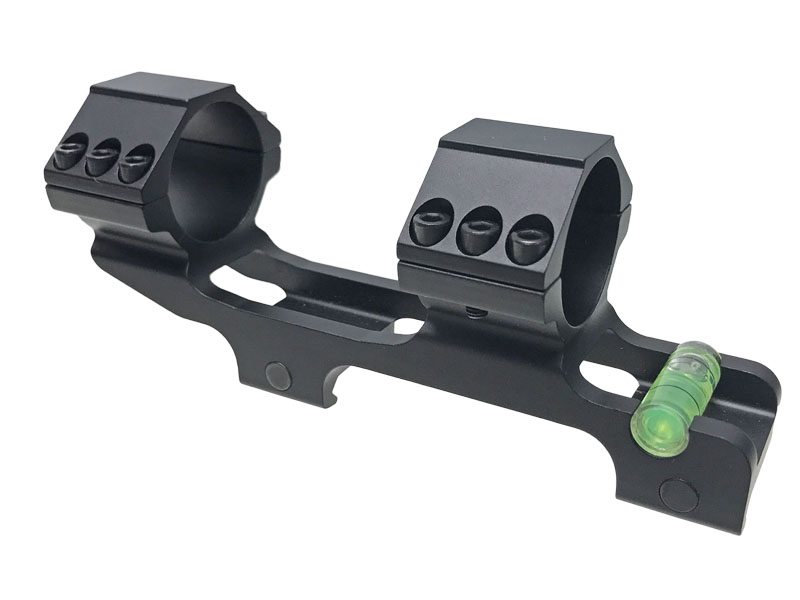 30mm径スコープに対応したエクストラライト仕様の5.5インチACDレベルマウント。6063航空アルミを用いた軽量・高剛性ボディに、水平射撃をサポートするバブルレベルを搭載し、精密なゼロインを追求するシューターに適した一本です。リング中心高は35mm、リング間長は55mmで、各種スコープの搭載に対応。20mmピカティニーレールに確実に固定でき、25.4mm用アダプターも付属。耐久性と操作性を両立した実戦派マウントです。