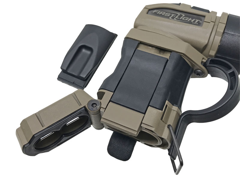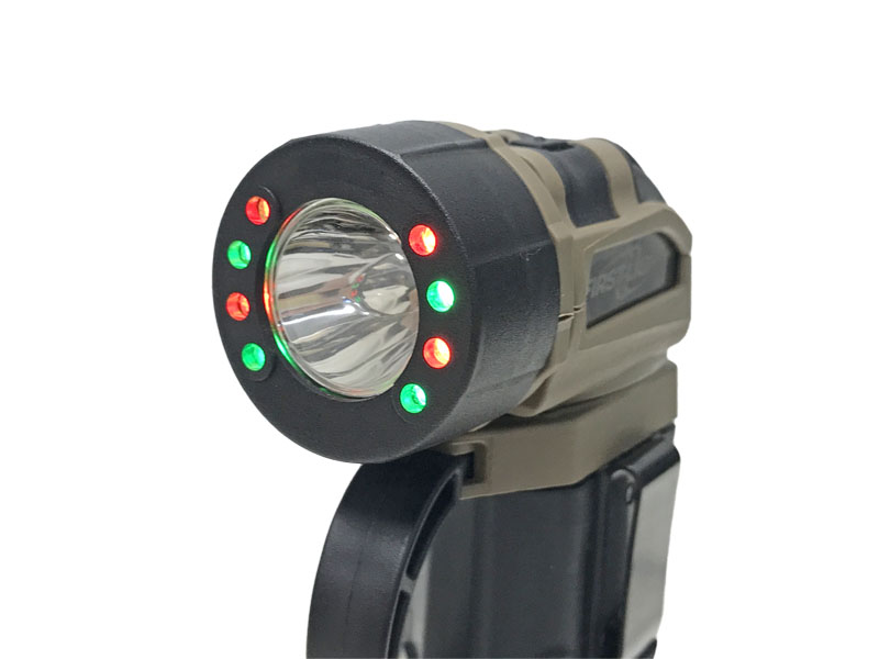 FIRST LIGHT USA TORQ MED TORQ MEDは、衛生兵向けに設計された戦術フラッシュライト。メインの白色光に加え、赤と緑のサブLEDを独自に混色することで、血液の色を鮮明に際立たせる。軽量樹脂製ボディは丈夫で、ヘッドは約320°、フィンガーループは約90°可動し、角度調整も自由自在。MOLLEマウント対応でボディアーマー胸部に装着可能、手元を確実に照らし負傷者の処置を支援する。単三電池でMAX155ルーメン、発熱ほぼゼロの常時点灯も可能。戦場での確実な光、TORQ MEDが手元に。
