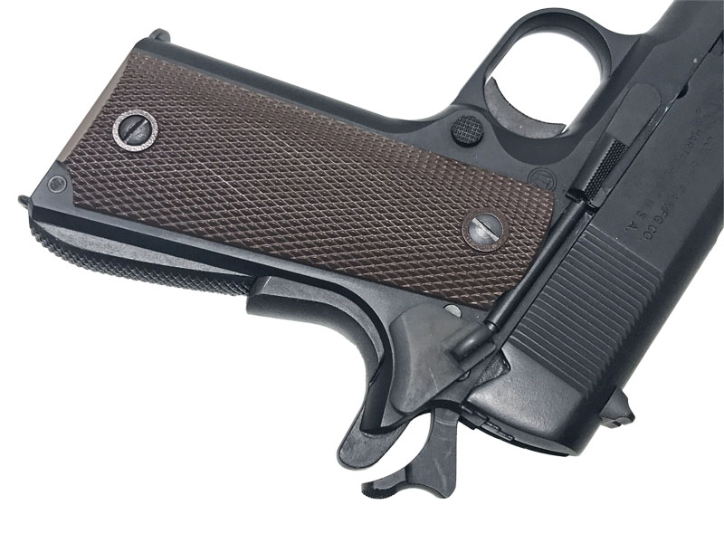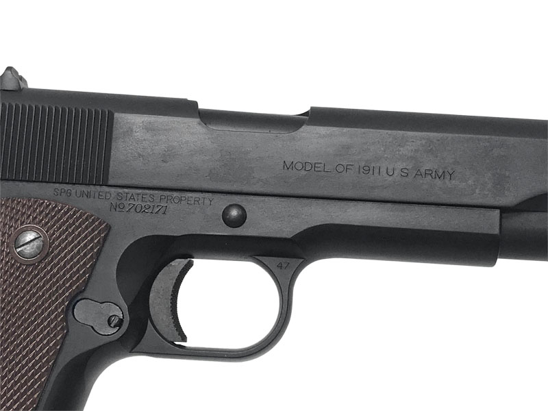 「M1911」の改良型が「M1911A1」である。チェッカー付きのショートトリガー、トリガー付け根のリーフカット、ハンマーバイド対策のロンググリップセーフティやラウンドのチェッカーのメインスプリングハウジングなどが改善点とされている。