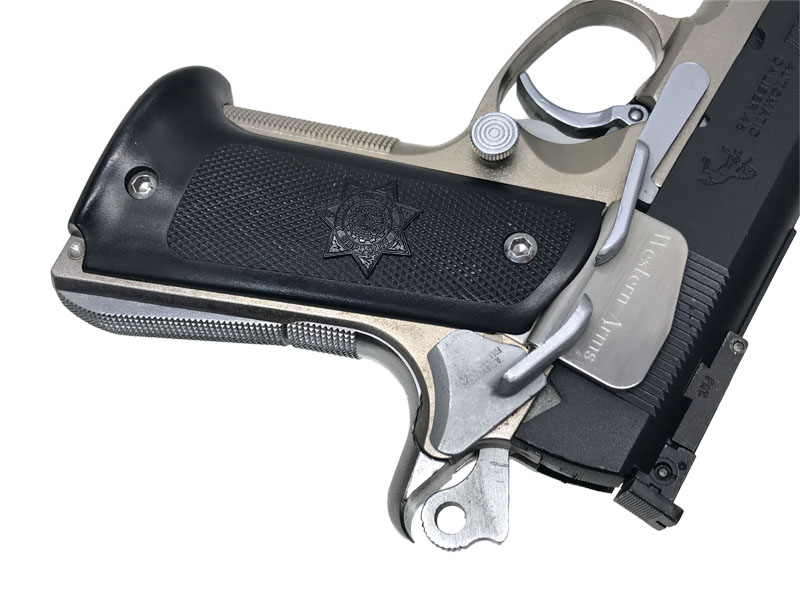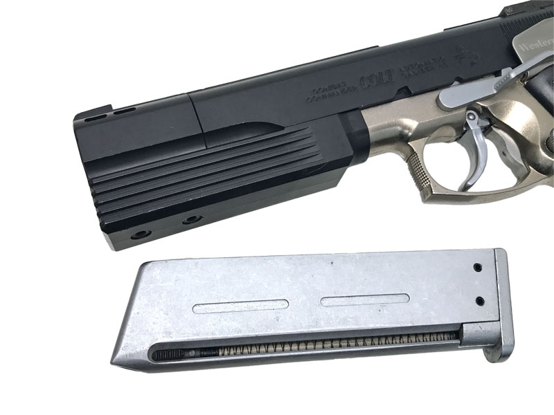 固定スライド方式ならではの高い命中精度を誇る、WA製「スーパースタビライザー .45AUTO」。