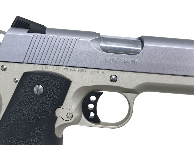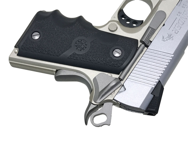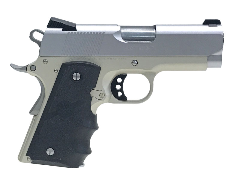 シリーズ90としてコルト社が発売したコンパクト45オートです。同社のオフィサーズ(3.5インチ)よりも更に小型化(3インチ)されており、ステンレス製のスライドと軽量アルミ合金製フレームで構成されている。