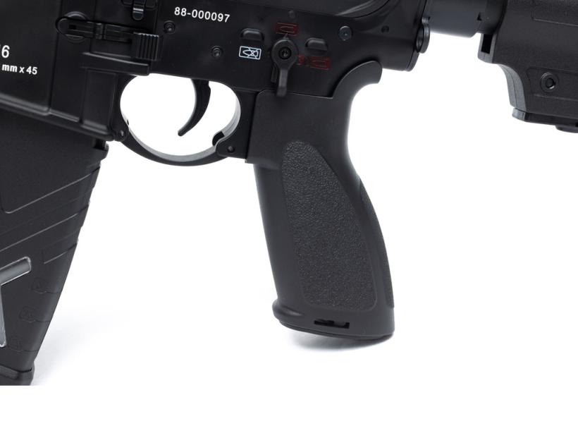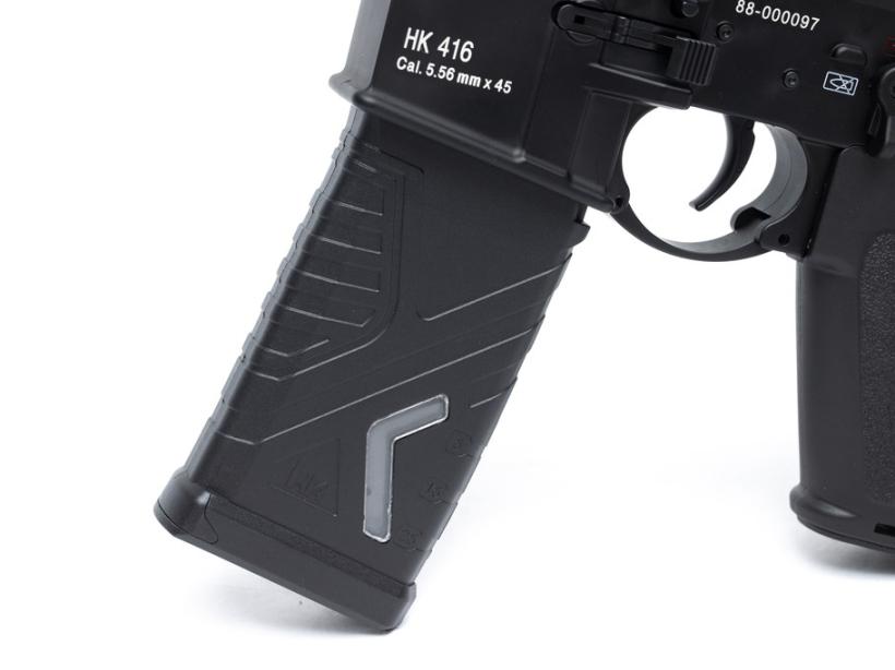 トリガーはColt M4系の流用ではなく、実銃のHK416A5に標準搭載されているオリジナル形状(後ろ側に切り欠きがある)ものを再現。