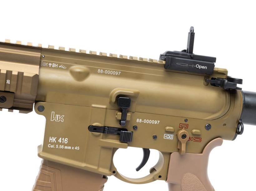 トリガーはColt M4系の流用ではなく、実銃のHK416A5に標準搭載されているオリジナル形状(後ろ側に切り欠きがある)ものを再現。