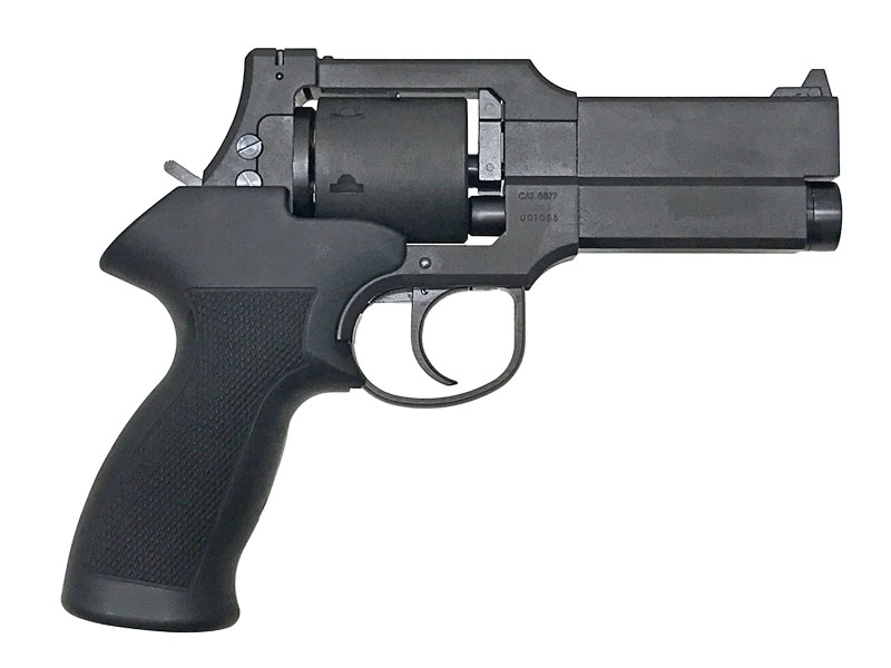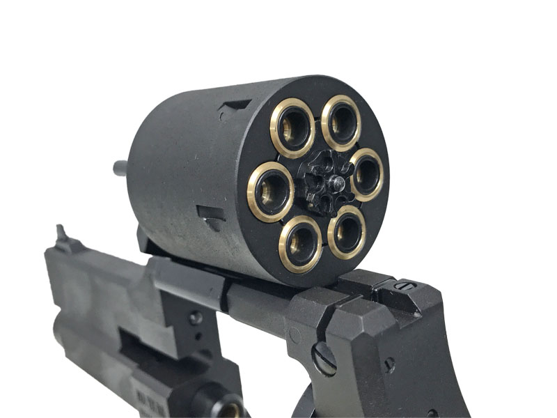 シリンダーが上方にスイングするなど攻殻機動隊好きにはもちろん、変わった銃好きにも楽しめる銃。グリップも握りやすく慣れてしまえば楽しい。