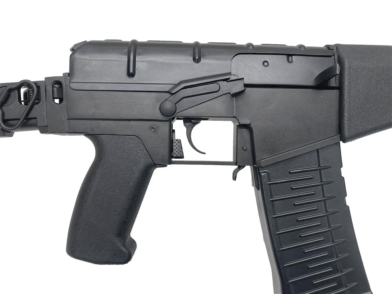 この銃のために開発された9×39mmという、ライフル弾としては口径の大きい亜音速弾を使用することで、完全なる消音と高い作動性能の両立に成功した、隠密作戦用のアサルトライフル。