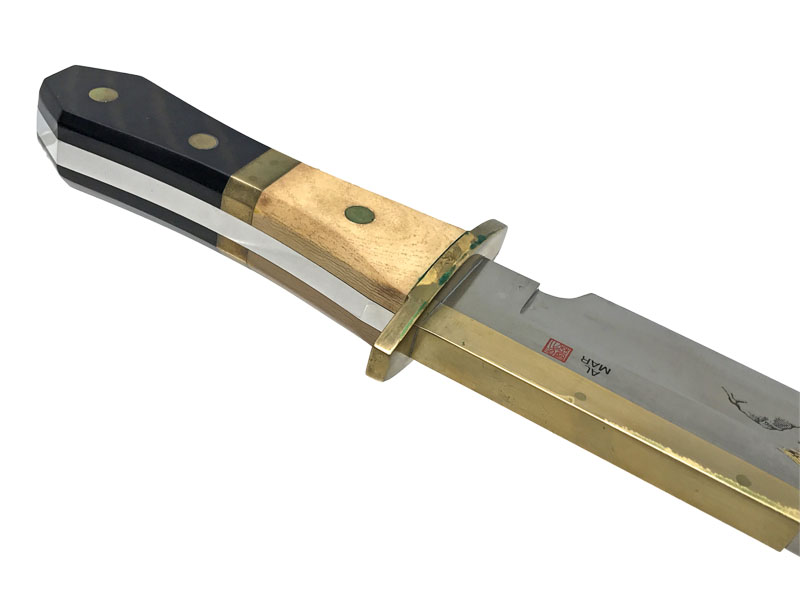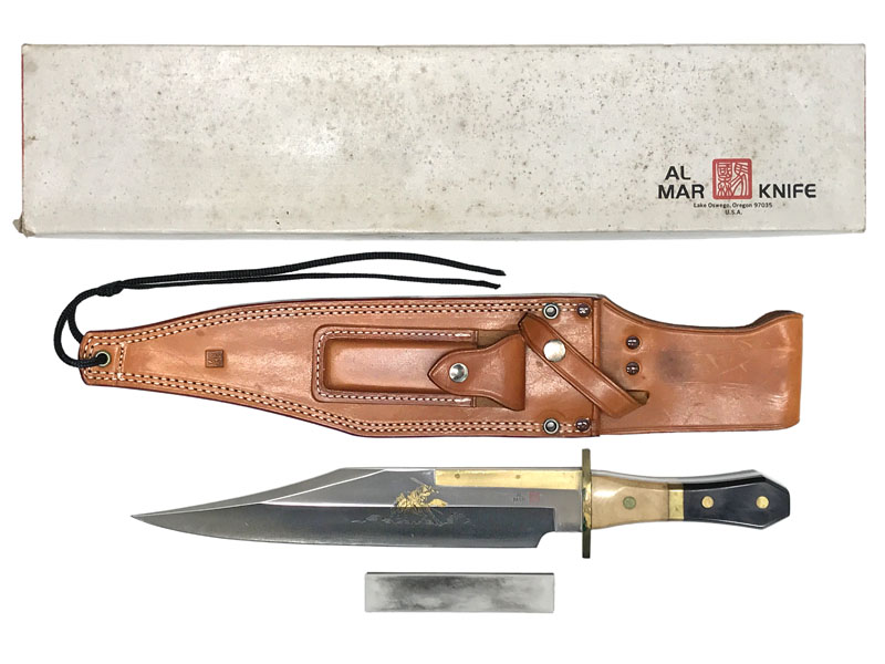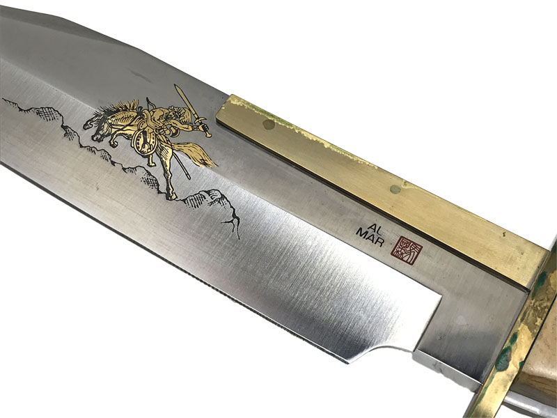 ミリタリー思想をベースに設計されたAl Marのボウイナイフ。重厚感のある造りと迫力あるデザインが特徴で、実用・コレクションの両面で魅力のある一本です。