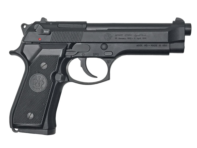 ベレッタUSAが湾岸戦争勝利を記念して限定販売した実銃を再現したモデル。スライドには作戦名「デザートストーム」と日付が刻まれ、記念モデルならではの存在感を放つ。HW仕様で重量感があり、質感の再現度も高い。資料性とコレクション性を兼ね備えた特別版。