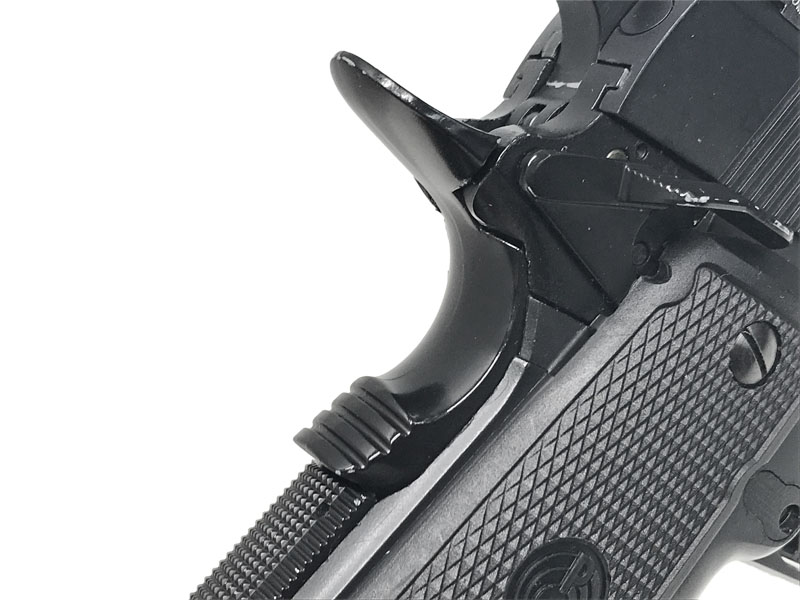 スライドはWA製 WILSON COMABT SERVICE GRADE 刻印の物へ、グリップセーフティはダックテールからビーバーテールタイプの物に交換されたカスタム品。