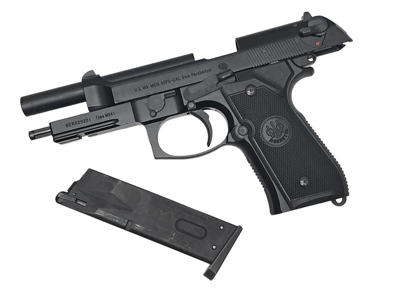 イタリア・ベレッタ社による美しいフォルムやグリップのチェッカリングなど、実銃から採寸することで細部までリアルに再現しています。また、フレームにはM9A1最大の特徴であるピカティニー規格のアンダーレイルを装備。幅20mmのレイルに対応した各種フラッシュライトが装着可能です。