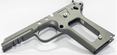 タニオコバよりマルイ MEU用レイルドフレームが登場!!ヘビーウェイト樹脂素材を使用し、タニオコバならではの一体型レイルで強度、耐久性が格段にアップ。表面処理がブラスト処理のみのため、自身で塗装や黒染めが行えるようになっています。グリップ表面がストレートになったタイプ。