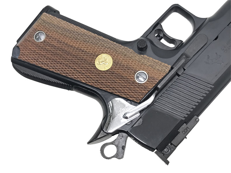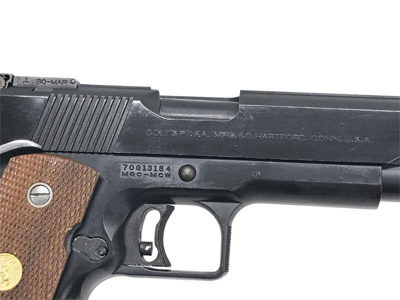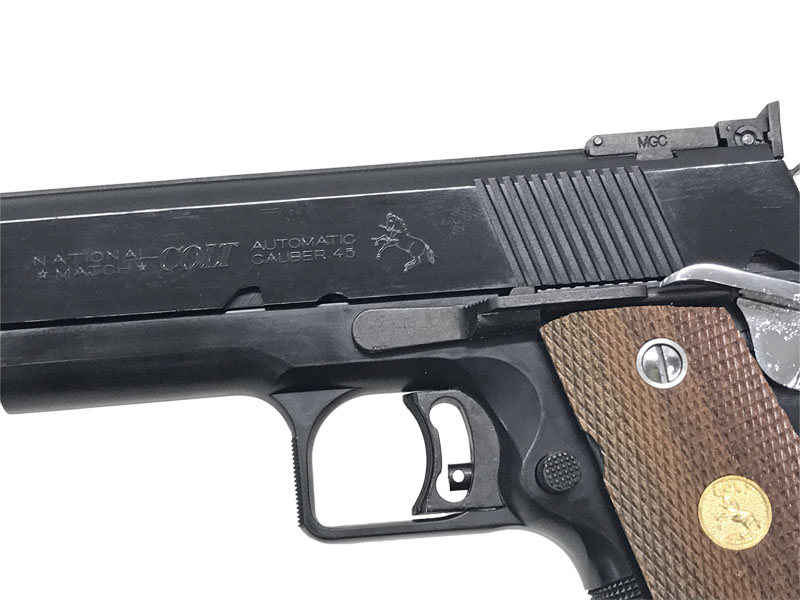 1981年、MGCはライターのイチロー・ナガタ氏の助言で自社カスタムブランド「MCW(MGC CUSTOM WORKS)」を設立。「J.W. HOAG .45 NATIONAL MATCH」もそのブランドを冠した作品の一つであり、当時のIPSCシューター憧れの名銃を見事に完全再現している。ロングワイドトリガー、ワイドグリップセフティ、エッグホールハンマー、エクステンデッドスライドリリース、スチール製アドバンスドグリップシステム、スウェンソン刻印のアンビセフティ、全てのパーツのチェッカー一つに至るまで丁寧に仕上げられている。