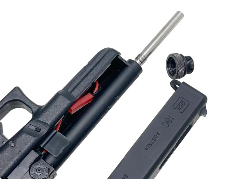 Laylax製ロングインナーバレルを組み込み、アタッチメントの追加でサイレンサーの装着に対応したカスタム品。