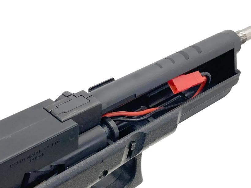 ハンドガンの小さなスペースの中に、電動ガンの心臓部ともいえるメカBOXを完全収納。