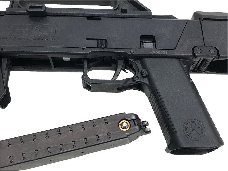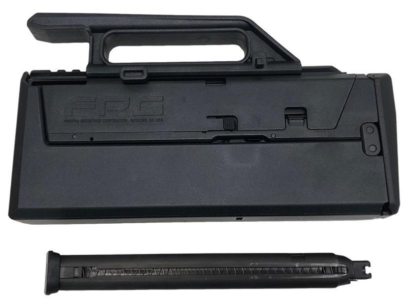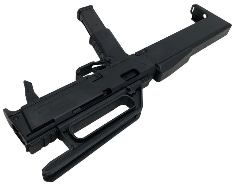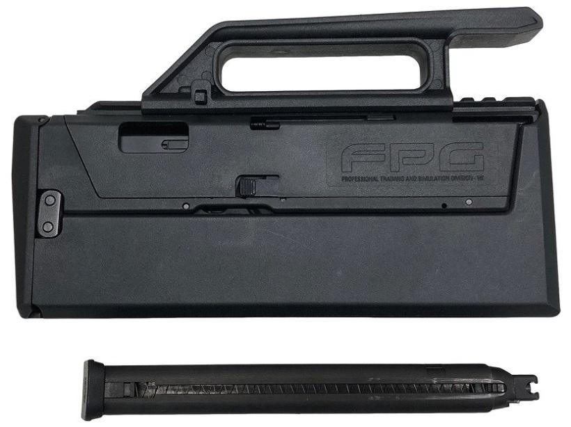 MAGPUL PTS社が実銃であるFMG9をエアガン向けに販売したのがFPG(Folding Pocket Gun)。スライドと連動したノブを引けば0.35秒でマシンガン形態へトランスフォーム!