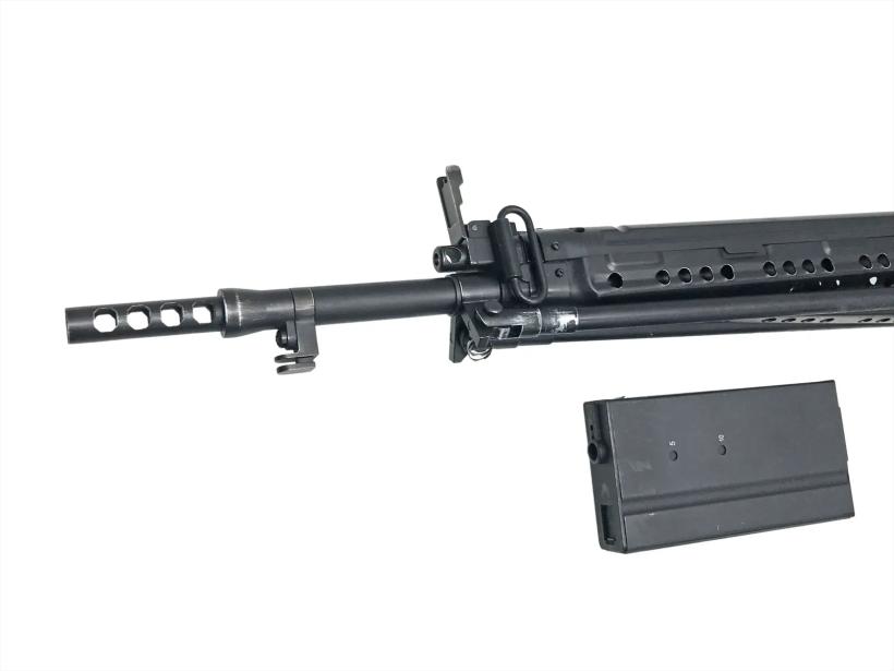 380発収容のスチールマガジン、可変ホップ搭載、フリップアップ式サイト、8mmベアリングの新設計ギアボックスが生む作動音は、64式が今も生きていることを告げる。戦後日本のリアリズムを、電動ガンで刻め。