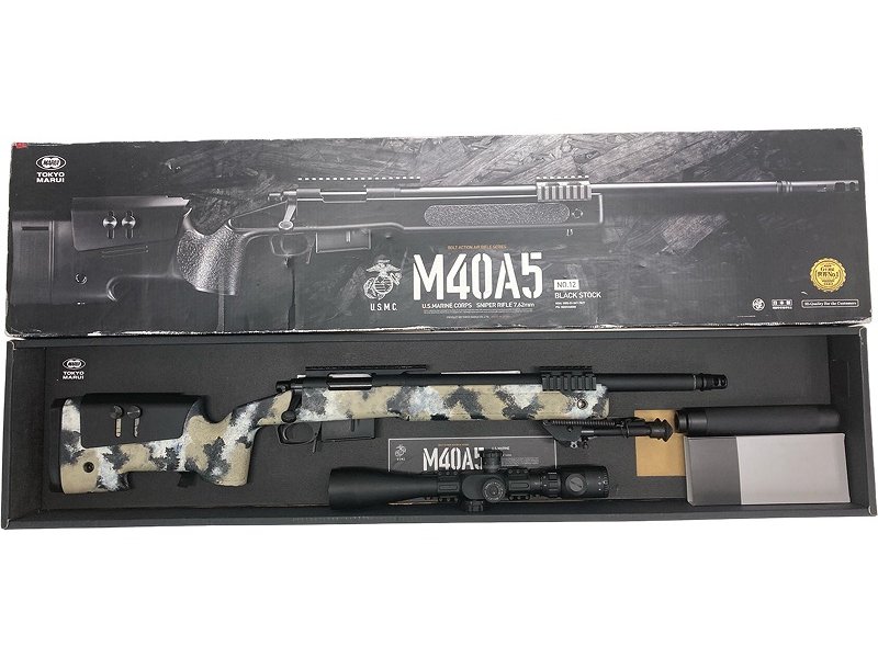 [東京マルイ] M40A5 ショートバレル/サプレッサー/高倍率スコープ/サンド迷彩塗装カスタム エアライフル (中古)