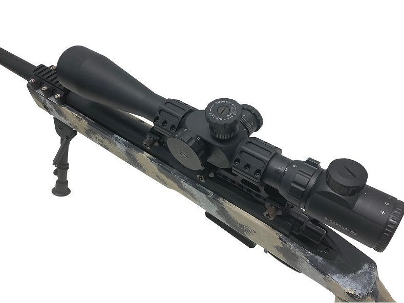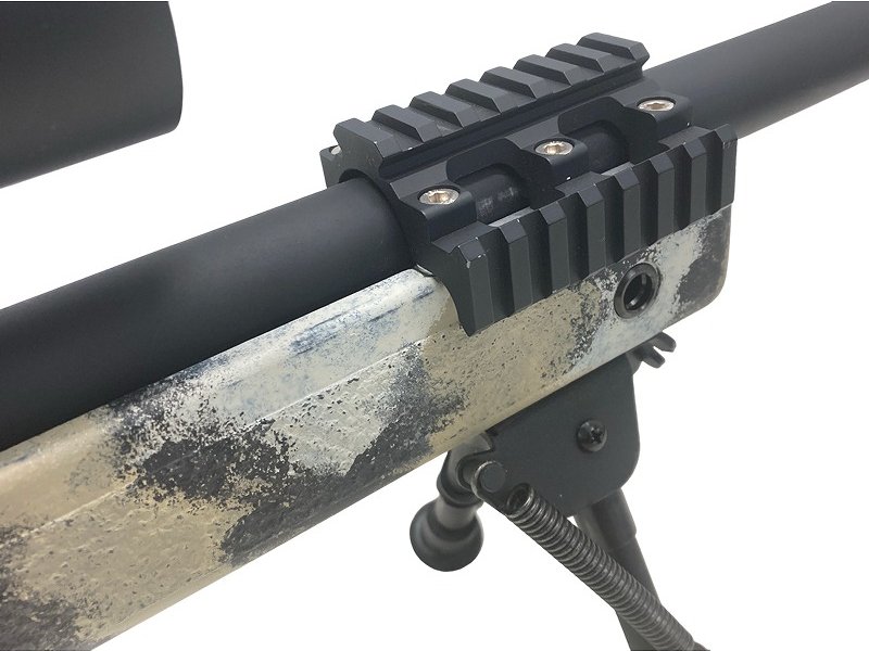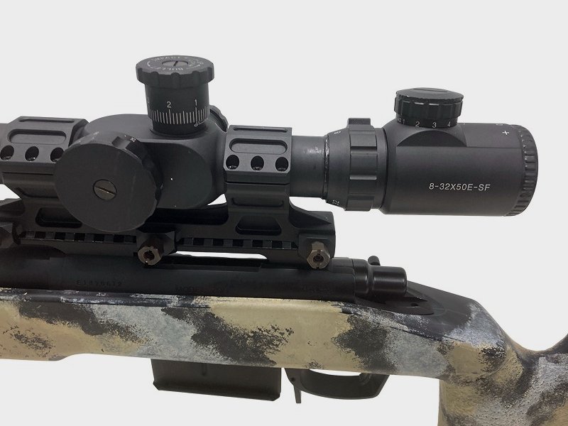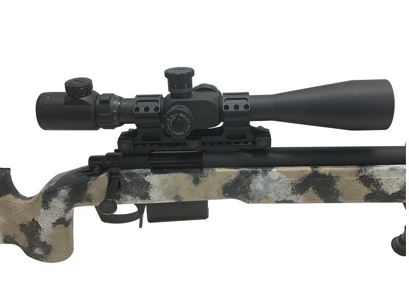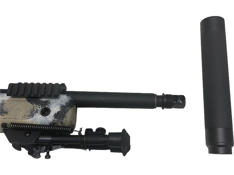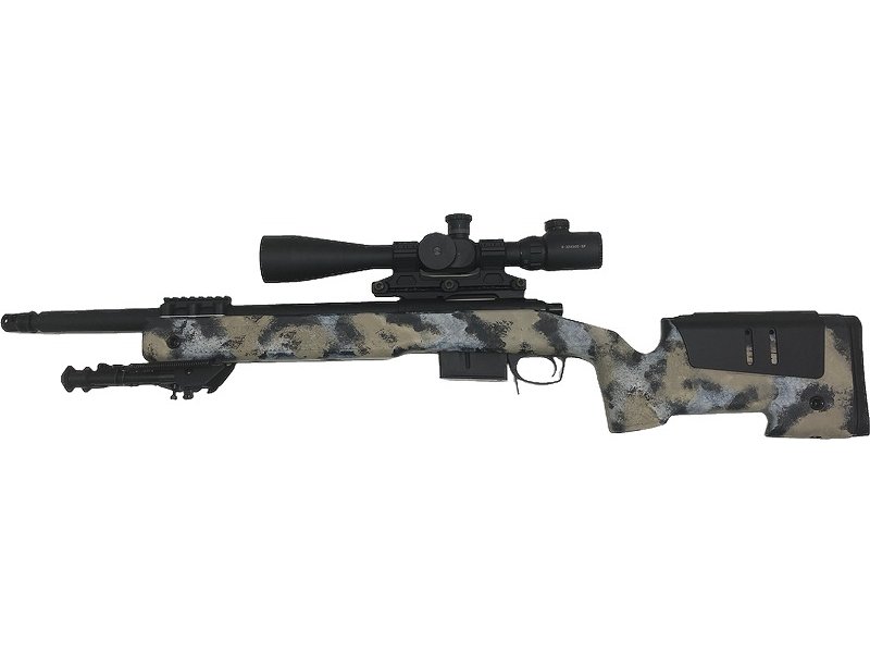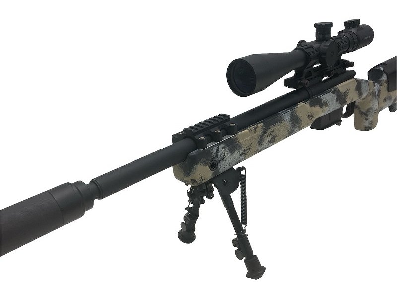 ショートバレル化(全長970mm)/アルミ製ファットサプレッサー/8-32x50E-SF 高倍率スコープ/サンド迷彩塗装カスタム