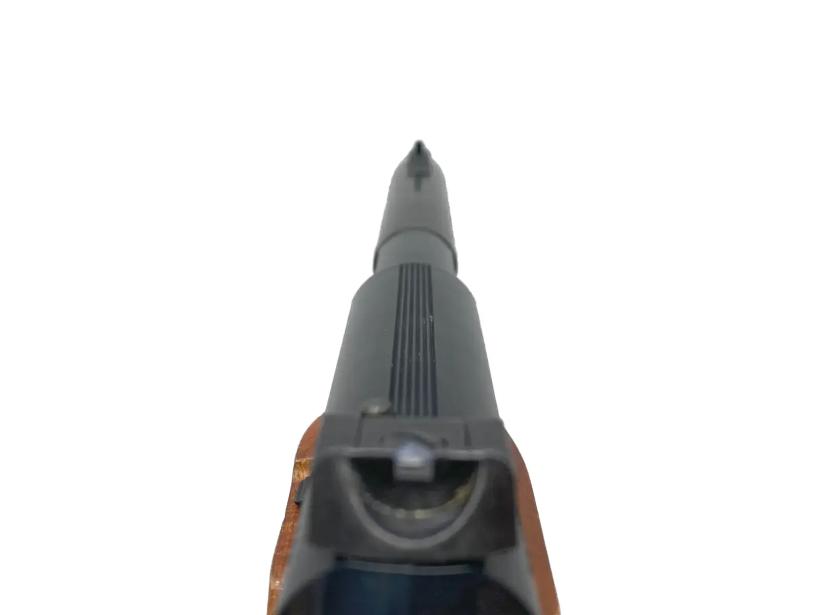[MGC/TAITO] コルト ウッズマン ヘビーバレルカスタム 6インチ ABS発火モデルガン 木製グリップ/墨入れカスタム バレル曲がり (訳あり) 製品詳細画像6 バレルが少し右にそっています