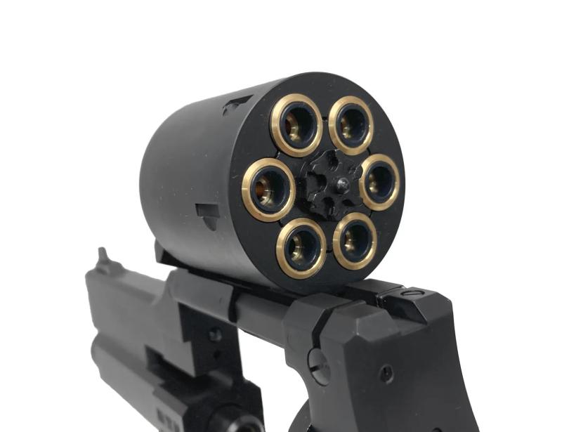 シリンダーが上方にスイングするなど攻殻機動隊好きにはもちろん、変わった銃好きにも楽しめる銃。グリップも握りやすく慣れてしまえば楽しい。