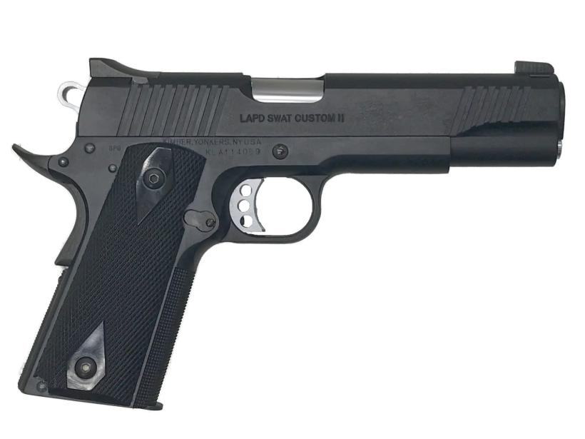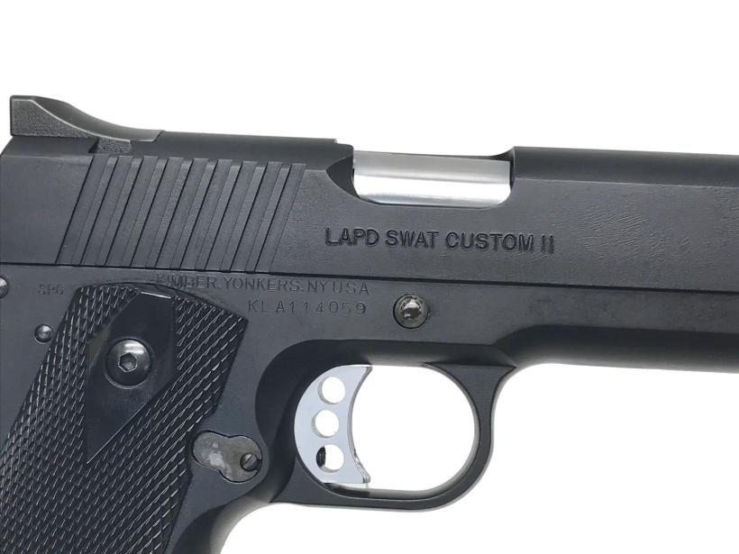 特殊部隊用として生まれたカスタム銃。スーパーブラック仕上げのHWモデル。ロス市警のSWATに採用されその地位を確実なものにした、スタイリッシュでシンプルな1911が売りのキンバー社をモデルアップした一丁。