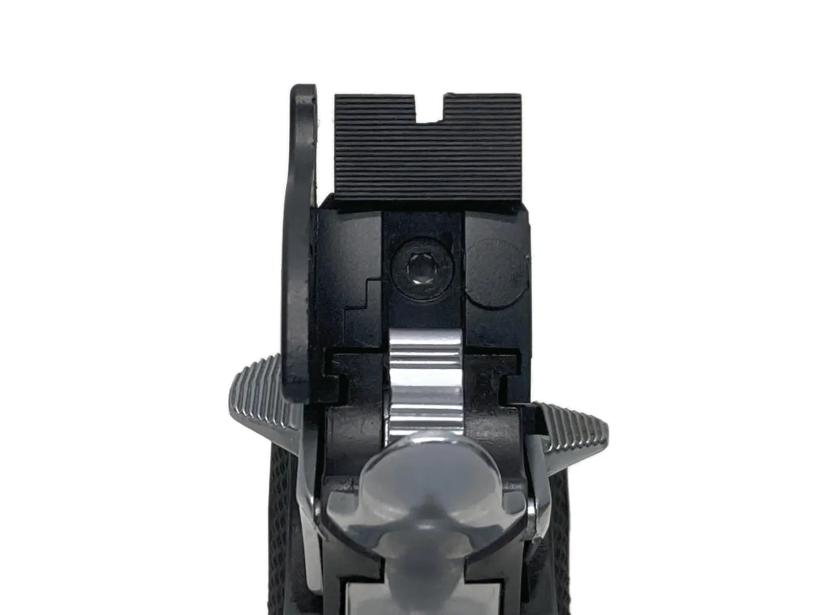 レースメカバージョンなので動作は快調である。分解するには6角レンチでマズル前方のスパイクを外さなければならないが、その後はスライドストップを抜くだけでフィールドストリップ可能になっている。重量も1キロを超えており持った瞬間にずしりとくるその重量とあいまって存在感は抜群。