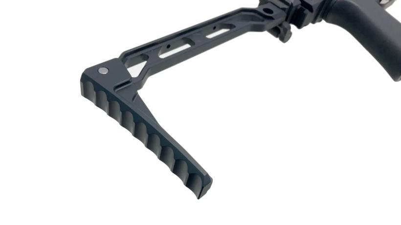 金属パーツを採用:ロアーレシーバーをはじめ、各部のパーツにダイカストやプレススチールを用いて目にうつる重厚感と手にした時の重量感を演出し、高い剛性も実現しています。また、ロアーレシーバーには、デフリックコートを施すことでスチール黒染め処理の質感を再現しています。