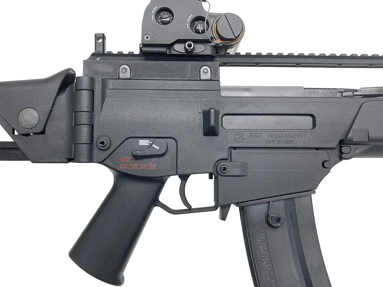 大人気のS&T G36C スポーツラインシリーズから、「H&K G36K ミリタリー IDZ スポーツライン」が登場ストックは伸縮5段階調整可能、またチークピース上下3段階調整可能となります。この機種でこの軽さは必見!使い勝手バツグンです!