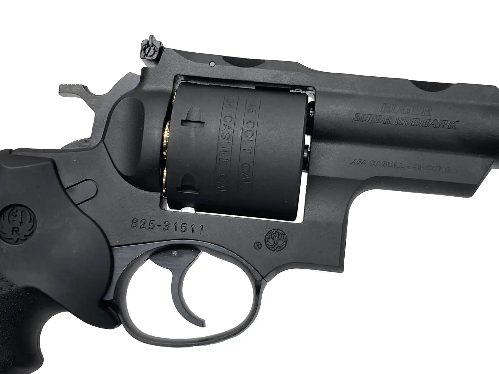 ■大口径ダブルアクションリボルバー「スーパーレッドホーク」。
