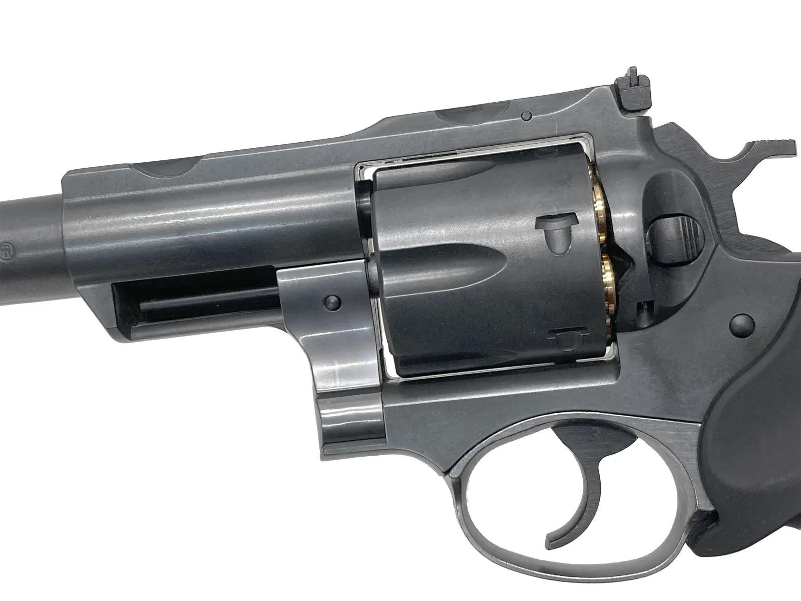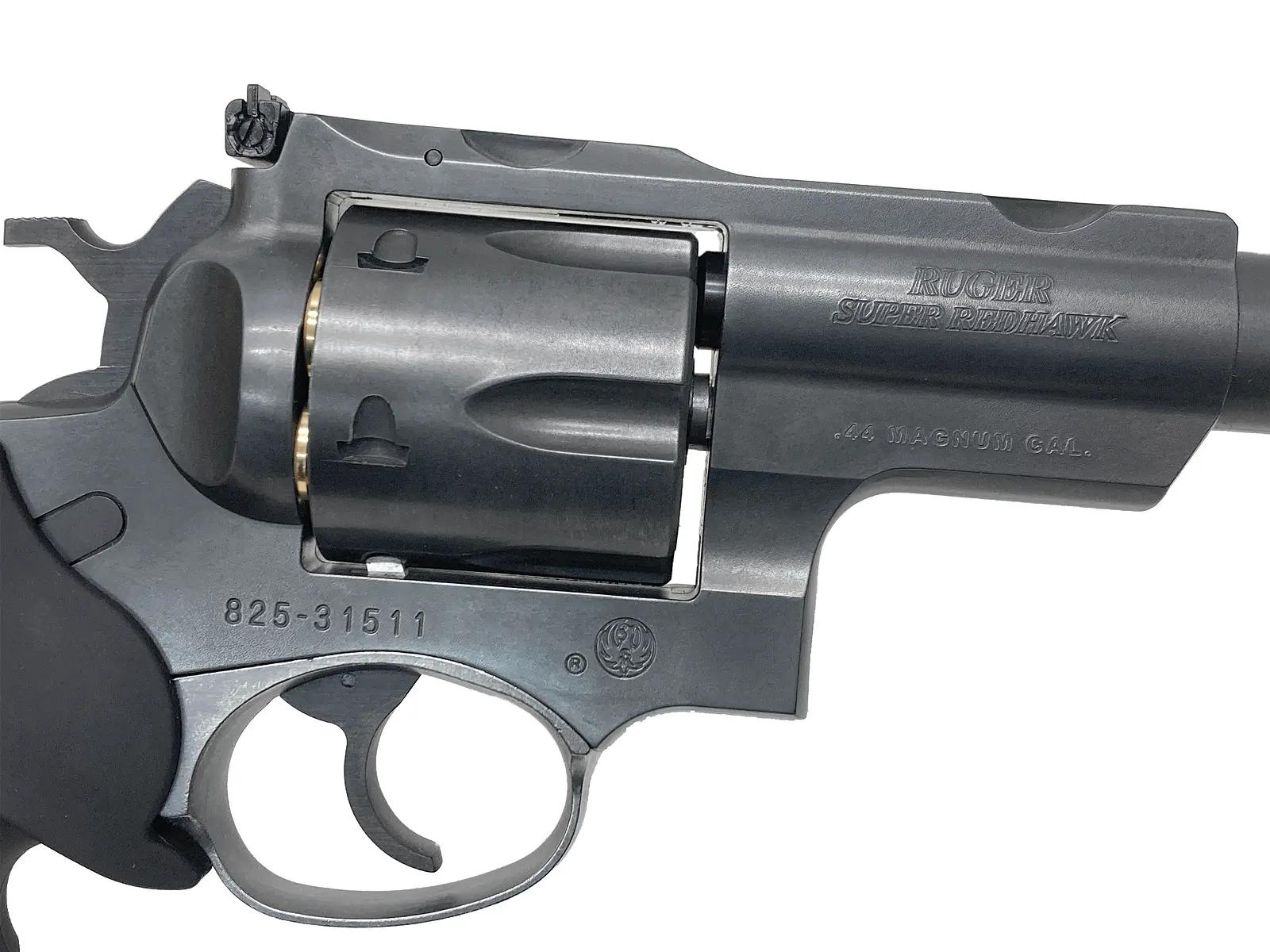 ■大口径ダブルアクションリボルバー「スーパーレッドホーク」。