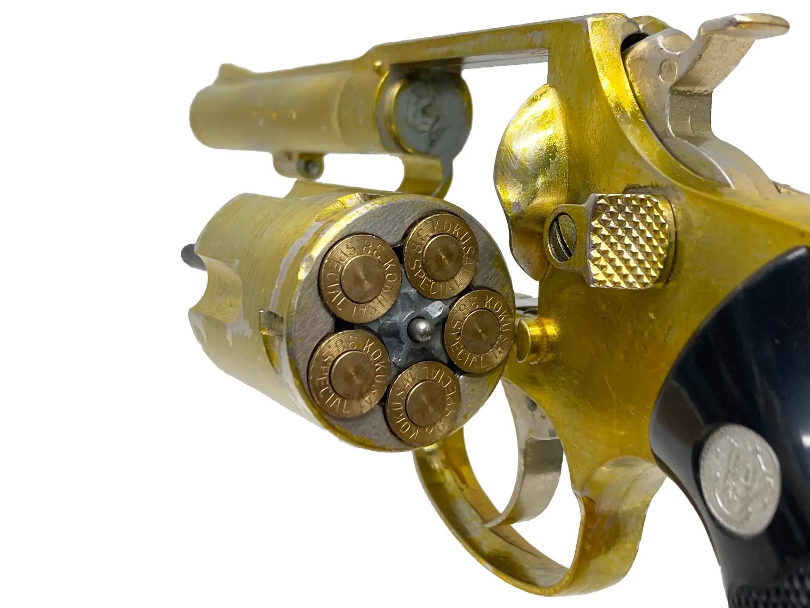 愛好家の間で語り継がれる伝説的なヴィンテージ・モデル。S&W M36をベースとしつつ「ハンドエジェクター」の名を冠した希少な一挺だ。実銃では珍しいスクエアバット仕様のフレームが、他にはない独自のシルエットを形成している。亜鉛合金特有の冷たい質感と重厚感は、現行の樹脂製では決して得られない魅力。歴史的価値を内包した、至高のコレクターズアイテムと評したい。
