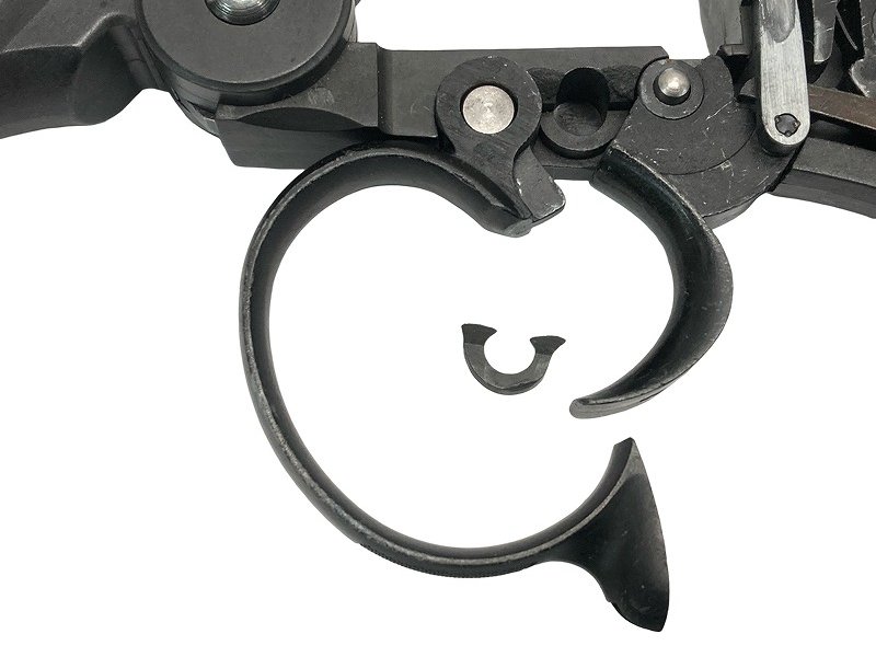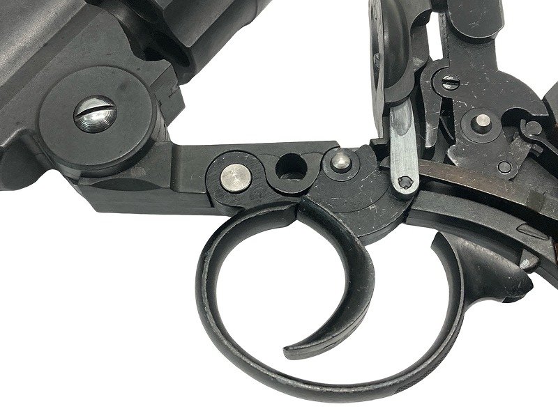 ダミーカート弾頭を付けたままシリンダーへの装填ができるようにしたカスタム品。トリガーガード固定パーツに欠けがある為トリガーガードに