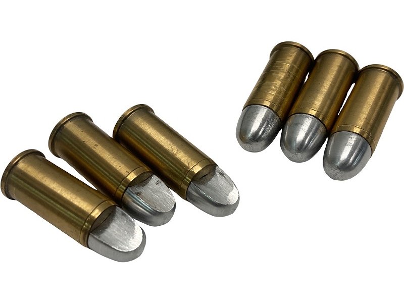 本来は、シリンダーへの装填は発火カートリッジでなければできないが、ダミーカートリッジの弾頭の一部を削り、シリンダーへの装填が可能となっています。