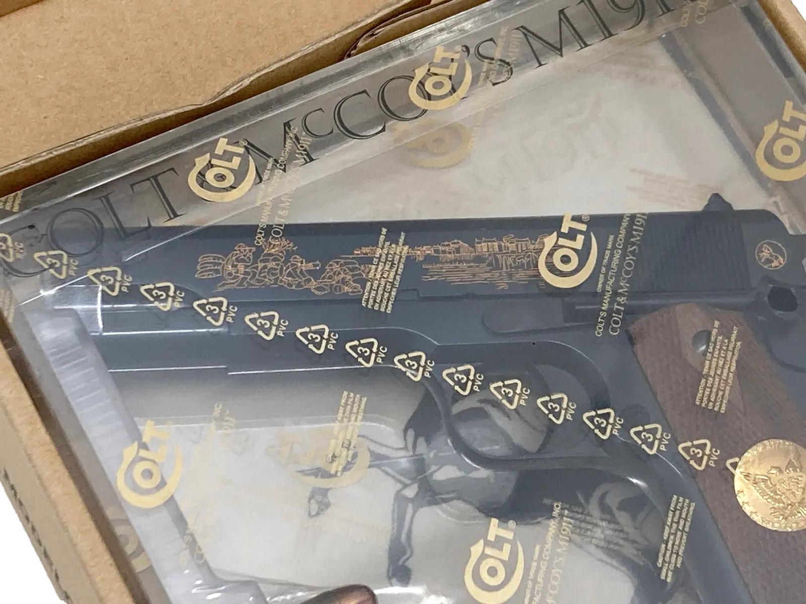 リアルマッコイズが手掛けた「シャトーテリー」は、第一次世界大戦の終結50周年を記念したコルトM1911を再現した一挺。強化ナイロン樹脂を採用したボディは、一般的な樹脂とは一線を画す高い剛性と緻密な質感を誇る。スライド右側に施された24金ローズゴールドの精密彫刻が、このモデルの格調を際立たせている。HOGUE社の特注グリップも相まって、工芸品的な価値を内包した究極のコレクションと評したい。
