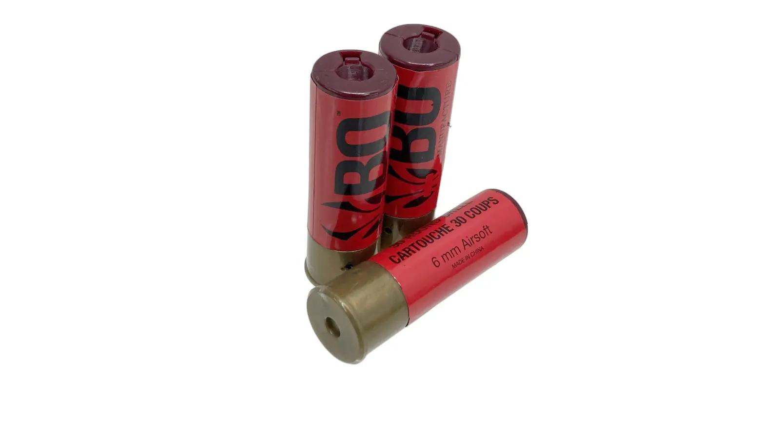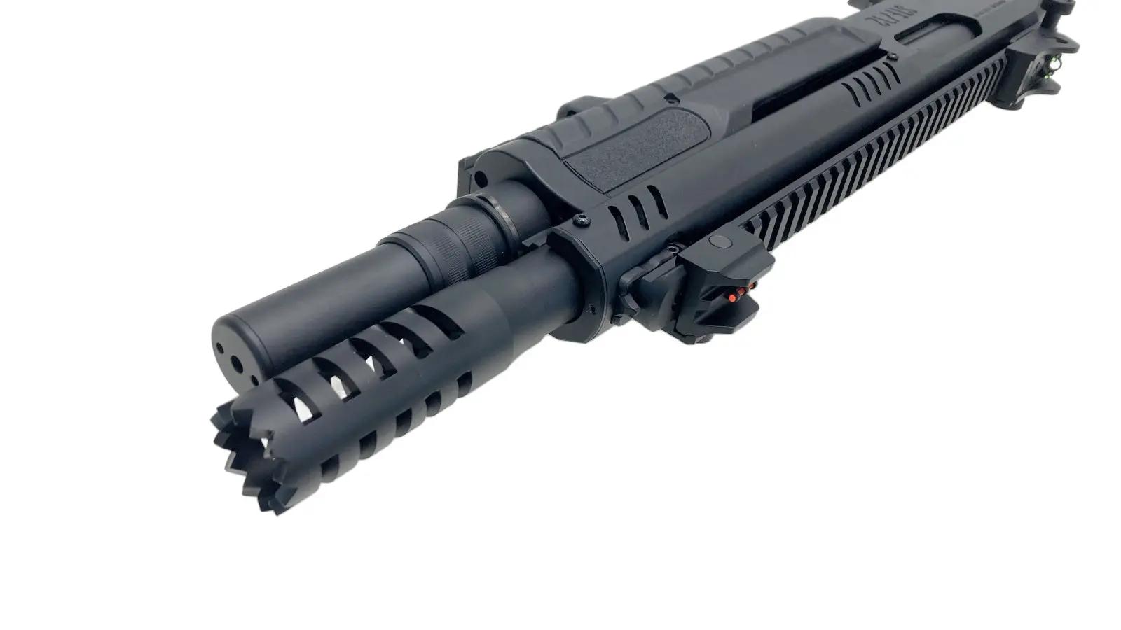 東京マルイタイプのショットシェルマガジンを使用した給弾システムを採用し、3発同時発射と6発同時発射が切り替え可能(固定ホップアップ)。ガス式のショットガンのため速射に向いた軽いコッキングを実現。ガスタンクはグリップ内蔵式で容量も大きいため一回の注入で長く使える。