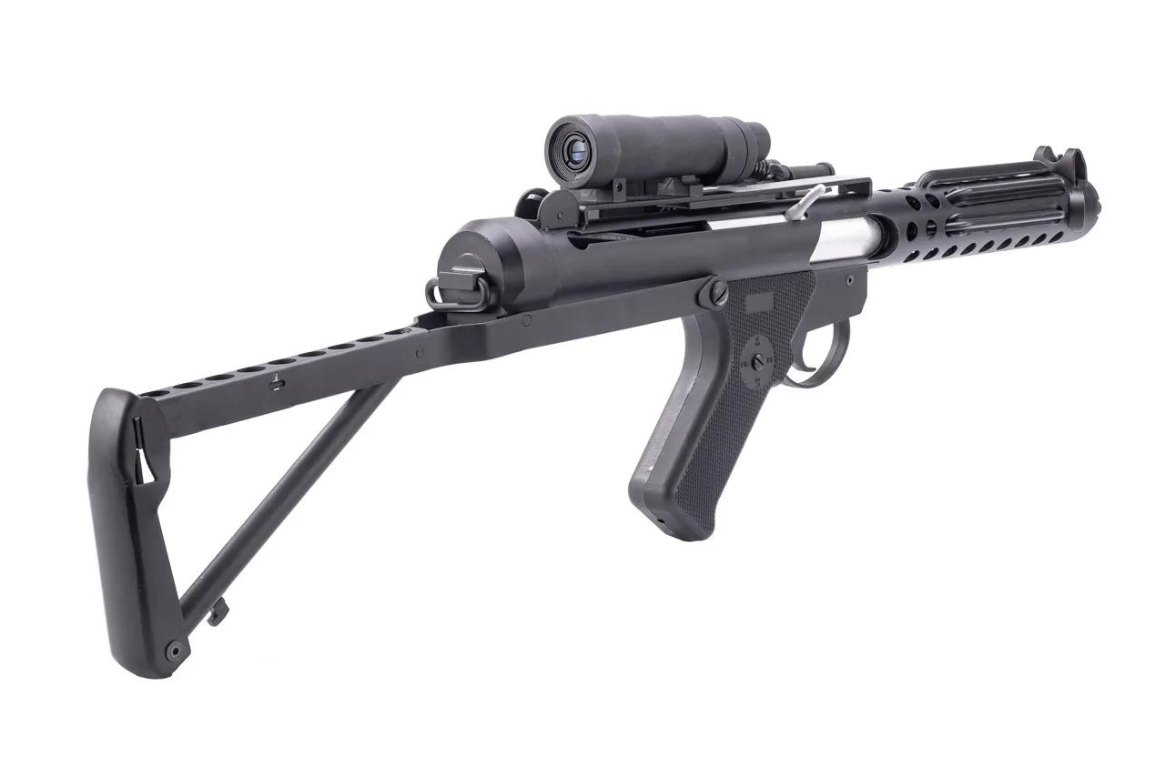 コンパクトな収納: ストックを折りたたむことでハンドガード下部に収納でき、取り回しの良いサイズに変更可能。