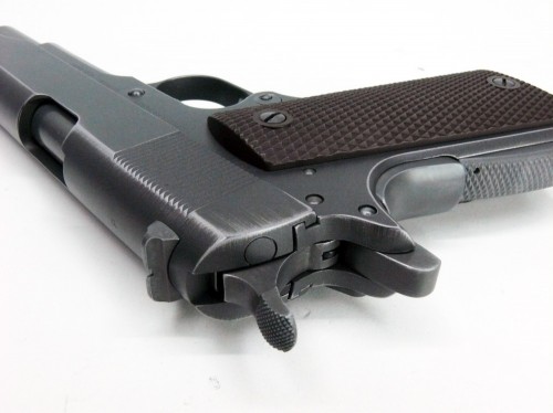 傑作戦争映画劇中において、クライマックスで戦車に向けて発砲するシーンをイメージしたM1911A1。