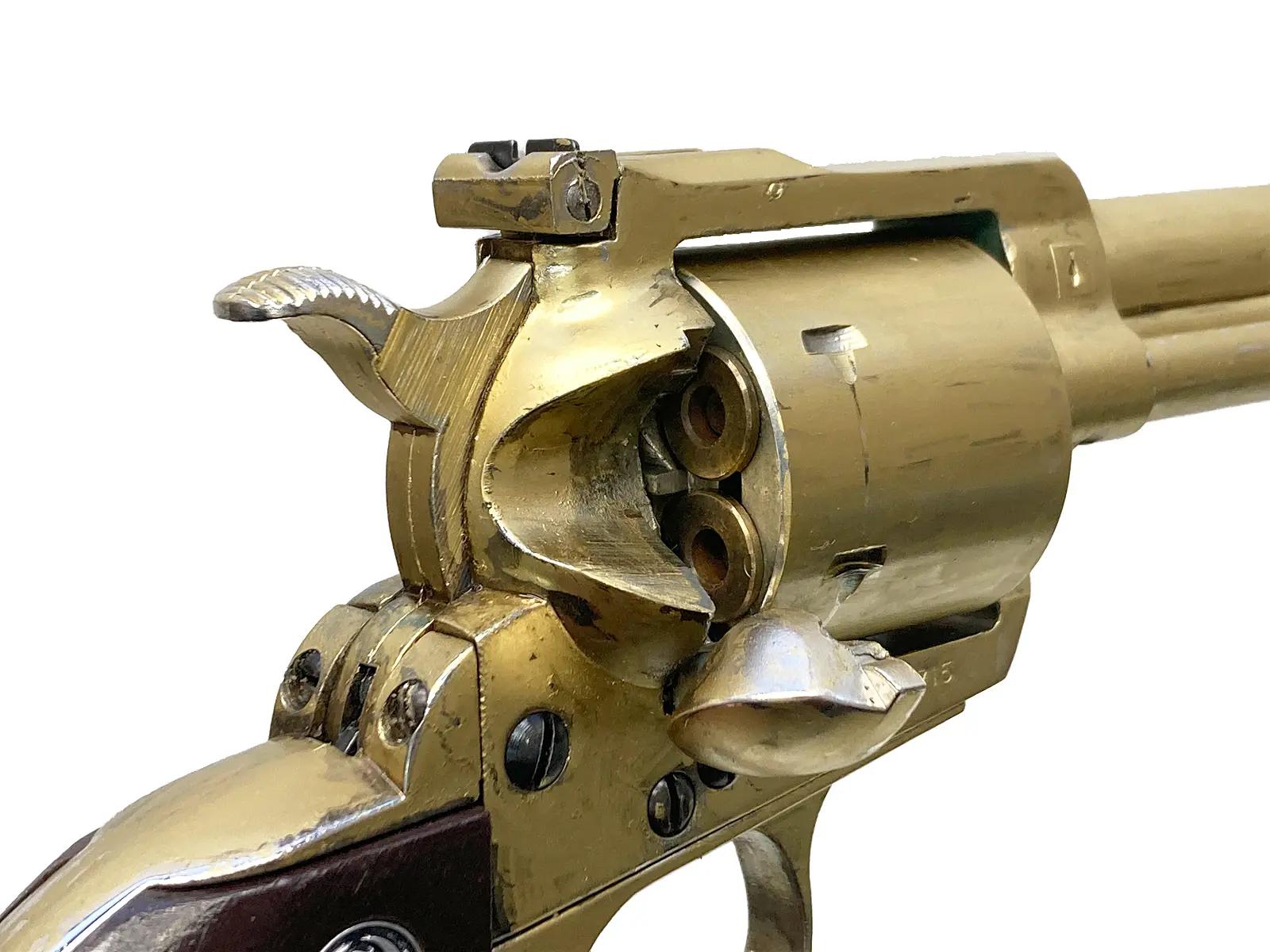ハドソンが手掛けた本作は、亜鉛ダイキャスト特有の重厚な質感が魅力の金属モデルガンだ。実銃の仕様に基づき、シリンダーやトリガーガードの形状を忠実に作り分けるこだわりには、当時の職人の熱意が宿る。一部機構の簡略化はあるものの、別体式のファイアリングピンなど、細部への目配りはウェスタンファンの期待に応えるものだ。金属ならではの作動音と風格を堪能できる、歴史的価値の高い一挺といえる。