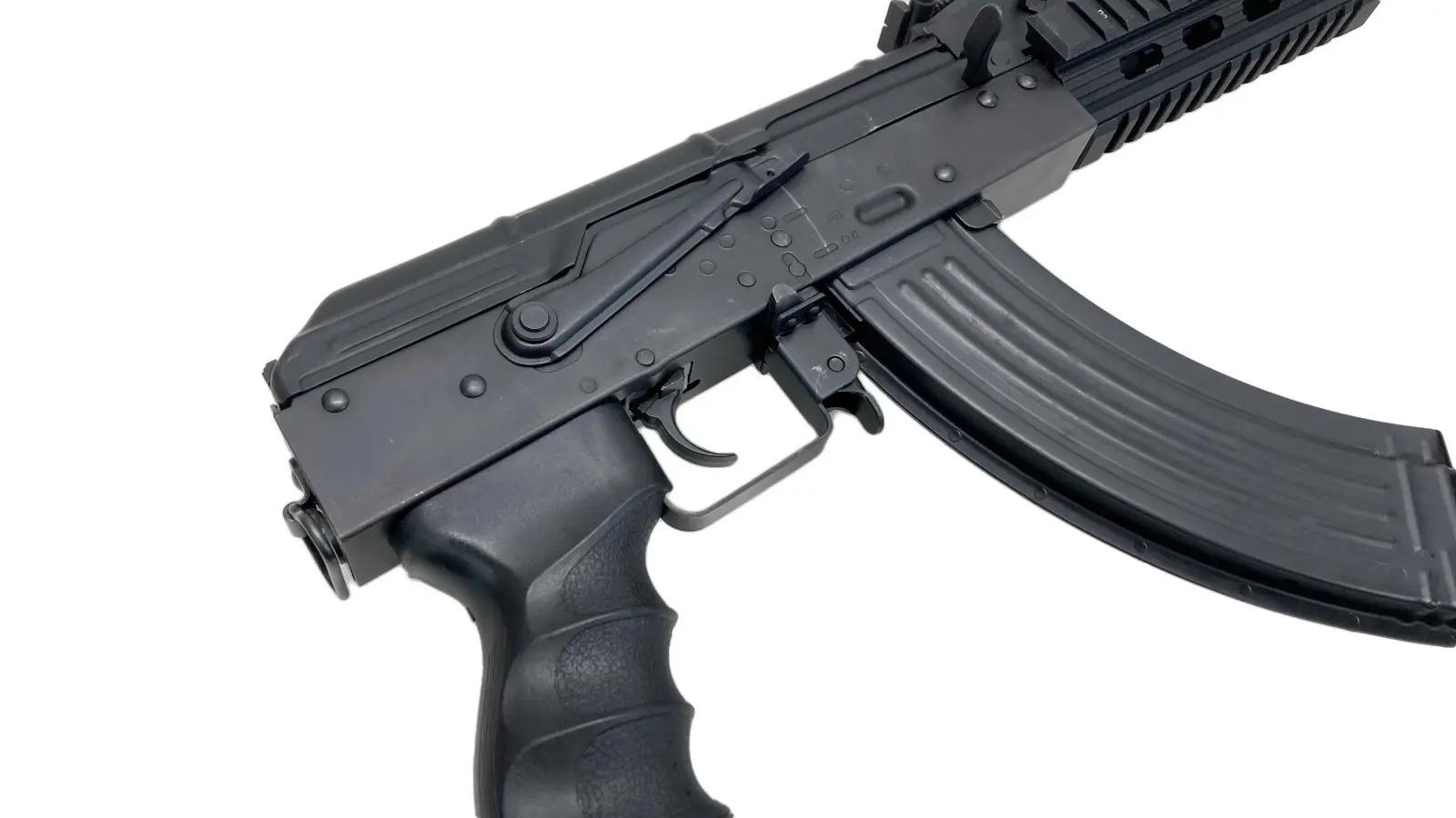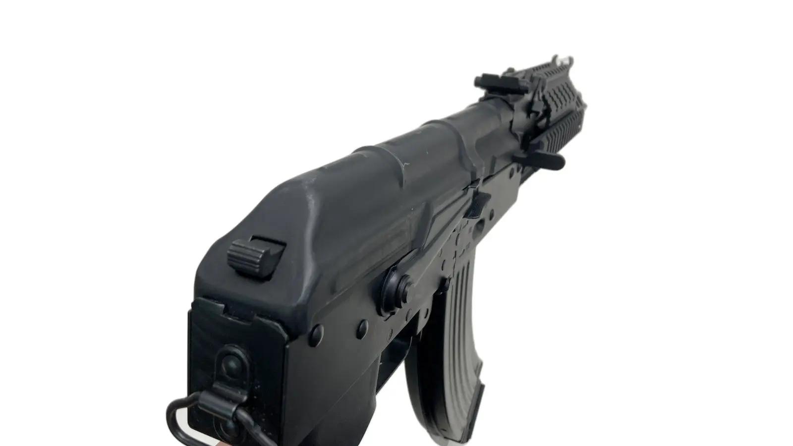 20mmピカティニーレール付きのハンドガードやFAB DEFENSE風のグリップを備えるピストルスタイルAKとなっています。
