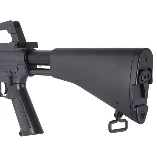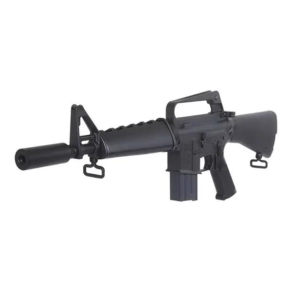ベトナム戦争時に極少数のみ生産され、後のXM177シリーズの前身となった「CAR-15 R607」がガスブローバックで登場。COLT社の正式ライセンスを取得しており、刻印入りのレシーバーをはじめ、短縮された三角形のハンドガードや特徴的な伸縮式ストックなど、実銃のディテールを忠実に再現した一挺です。