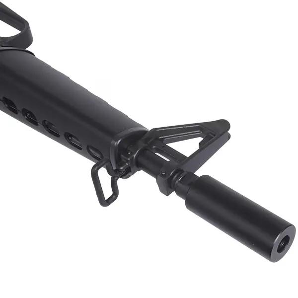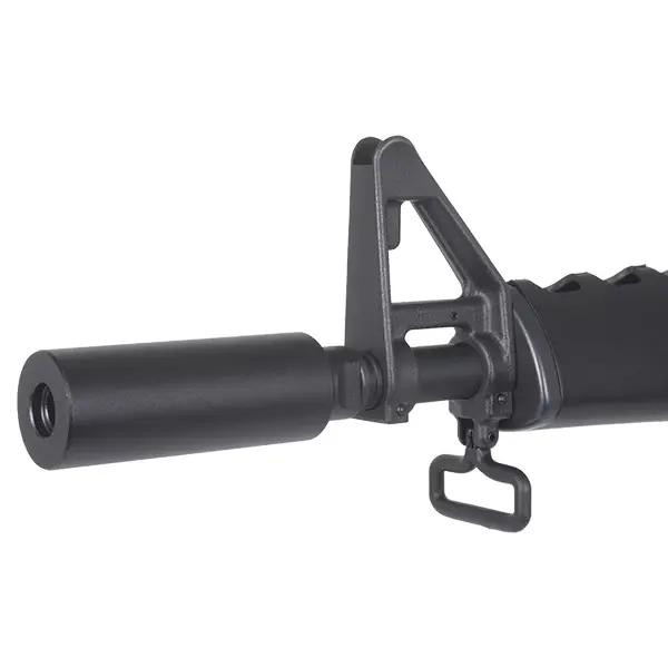 こだわりの外装: 10インチバレル、3.5インチモデレーター、CAR-15専用伸縮ストック装備。