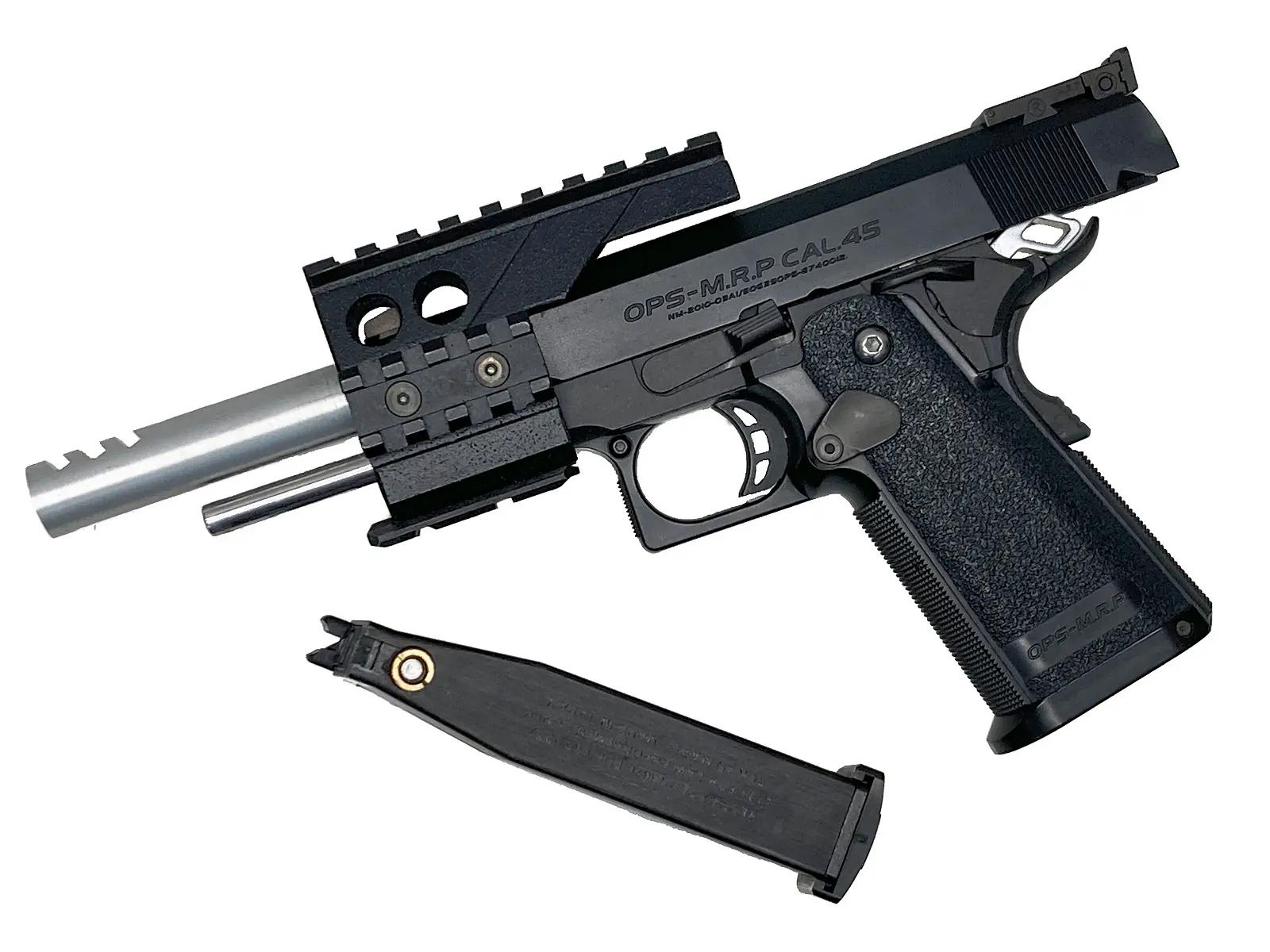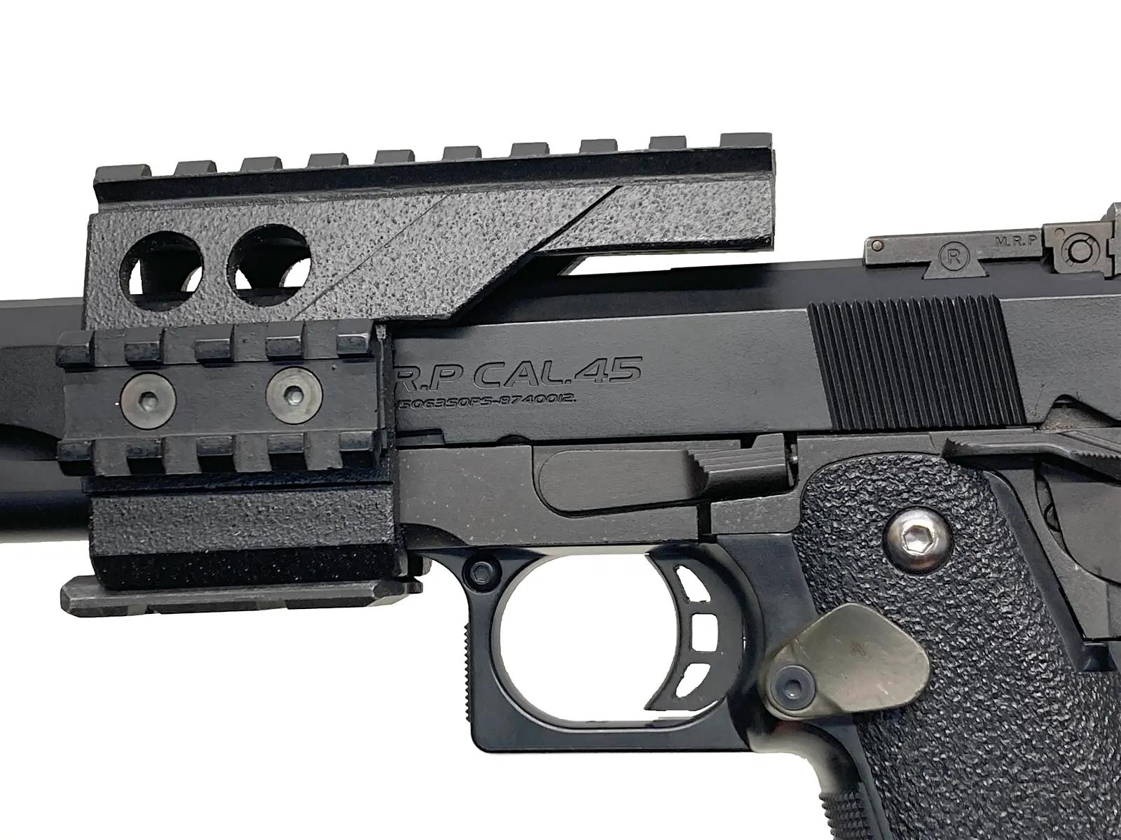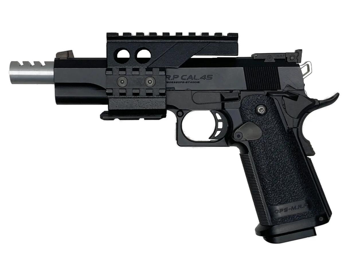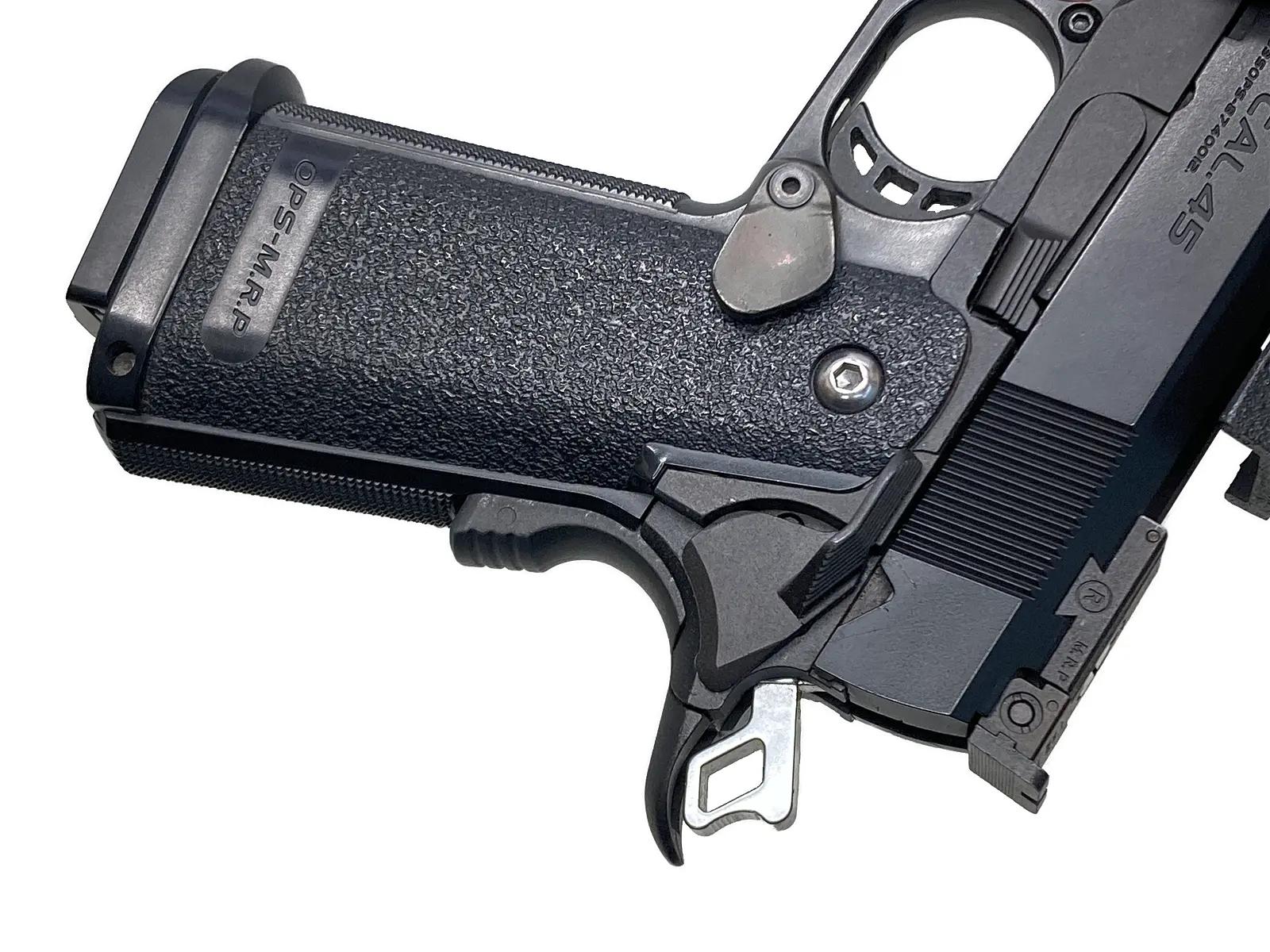 タクティカルからシューティングまで、最新のコンセプトを体現した多弾数モデルである。ガバメントの弱点である装弾数を複列弾倉化で克服し、樹脂製グリップと金属製シャーシの融合により細身のフォルムを実現している。付属のアンダーレイルにより用途に応じた拡張を持たせることも可能だ。大容量マガジンによる安定した作動と迫力ある作動感を備えており、実用性と機能美を高次元で兼ね備えた優秀な一丁と高く評価できる。
