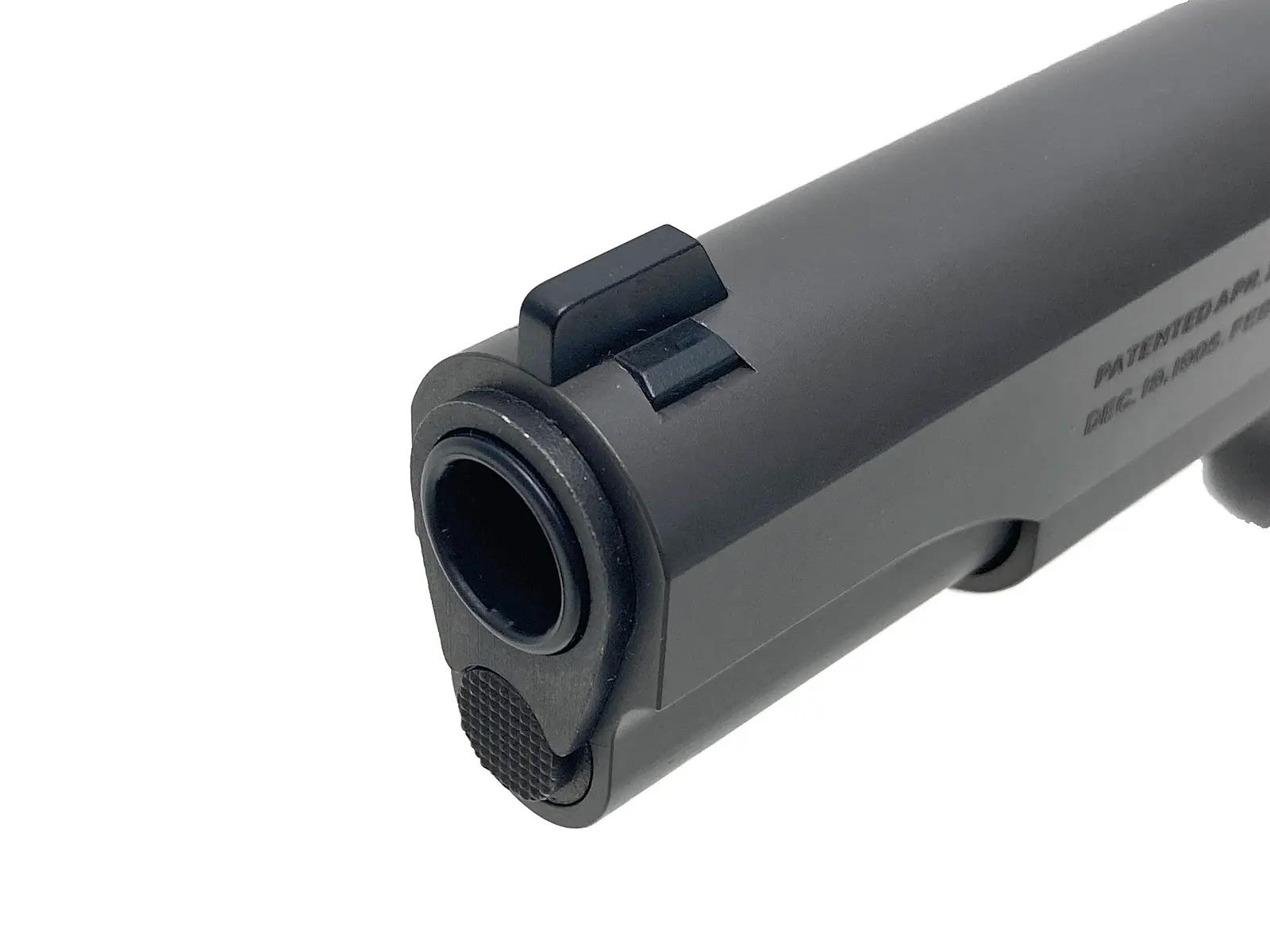 ミリタリーガバメントの決定版を目指し、徹底的な調査を経て誕生した一丁である。特筆すべきはその外観美だろう。パーカライズド処理を彷彿とさせるブラスト仕上げに加え、パーティングラインの入念な研磨、そして一丁ずつ施される打刻印が、圧倒的なリアリティを演出している。内部機構にも妥協はなく、ハードキック・ブローバックが生み出す作動感は秀逸だ。トイガンとしての完成度と造形美を高次元で融合させた傑作と評価できる。