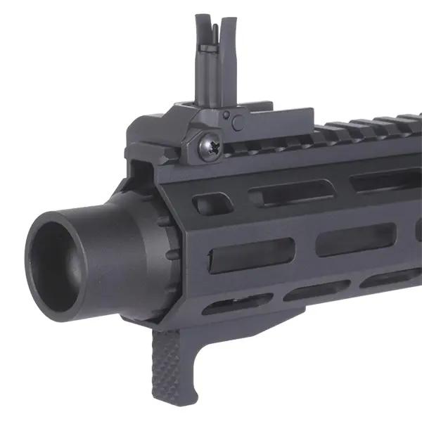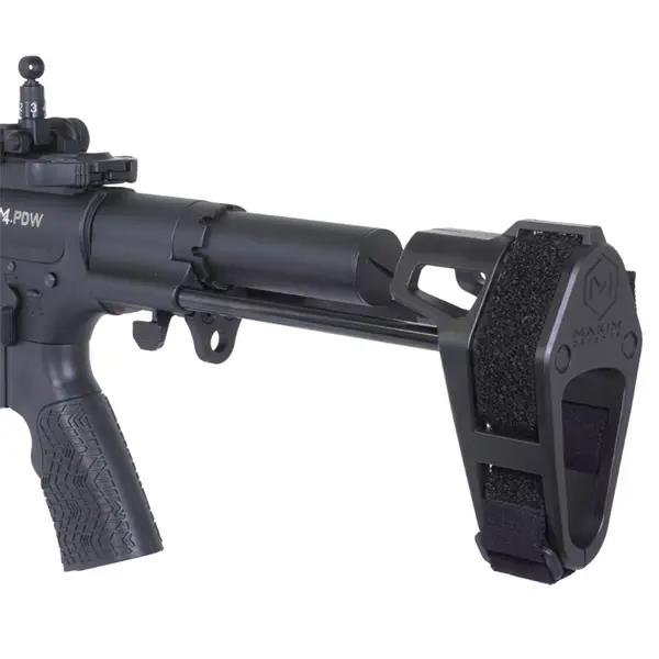 Daniel Defense社の「DDM4 PDW」をモチーフに製作されたこのモデルは、わずか7インチのショートバレルを採用しています。MFRタイプハンドガードやMaxim DefenseタイプCQBピストルブレースストックを装備し、屋内などの限られた空間でもスムーズな取り回しが可能です。レシーバーおよびハンドガードは質感の高い金属製となっています。