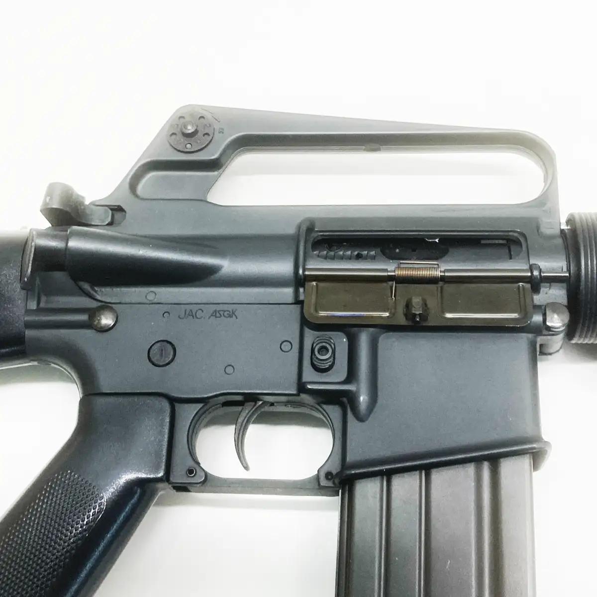 1989年にJACから発売された、外部ソース式ガスガンの名機「M16A1 ベトナムタイプ」です。電動ガン普及以前のサバイバルゲーム黄金期を支えた一挺で、当時のベトナム戦争映画ブームと共に絶大な人気を誇りました。