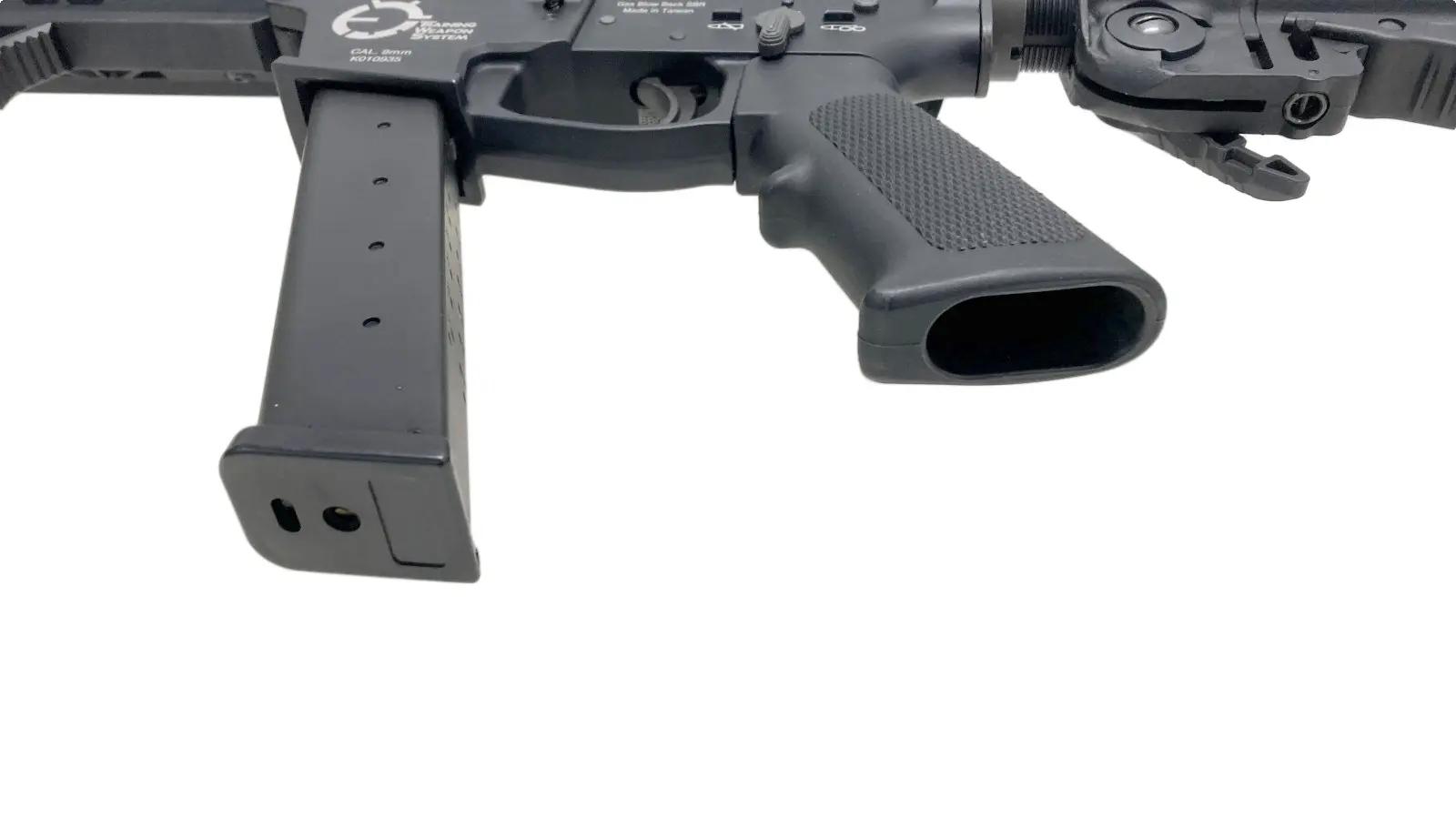 KingArmsより各社グロックマガジン対応のM4ベースPCCガスガンが登場!!こちらはカービン仕様ブラックカラー。