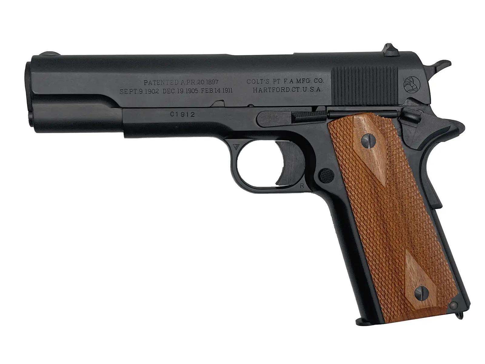近代オートマチックの源流として君臨する、ジョン・ブローニング設計の傑作。1912年型のコマーシャルモデルを再現した本作は、機能美と信頼性が高次元で融合している。ティルトバレル式ショートリコイルなど、現代まで続く機構の原点を体感できる構成だ。一世紀を超えて愛される歴史的価値と、洗練されたデザインは今なお色褪せない。歴史を象徴する、まさに完成された一挺である。