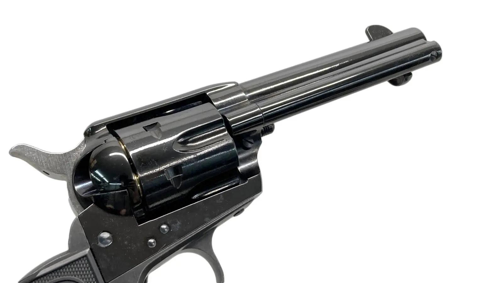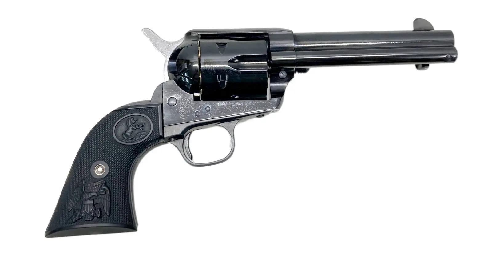 SAAは正義の証。西部開拓時代の銘銃、コルト・シングル・アクション・アーミーの4-3/4インチのシビリアン、スチールジュピターフィニッシュ・モデルです。