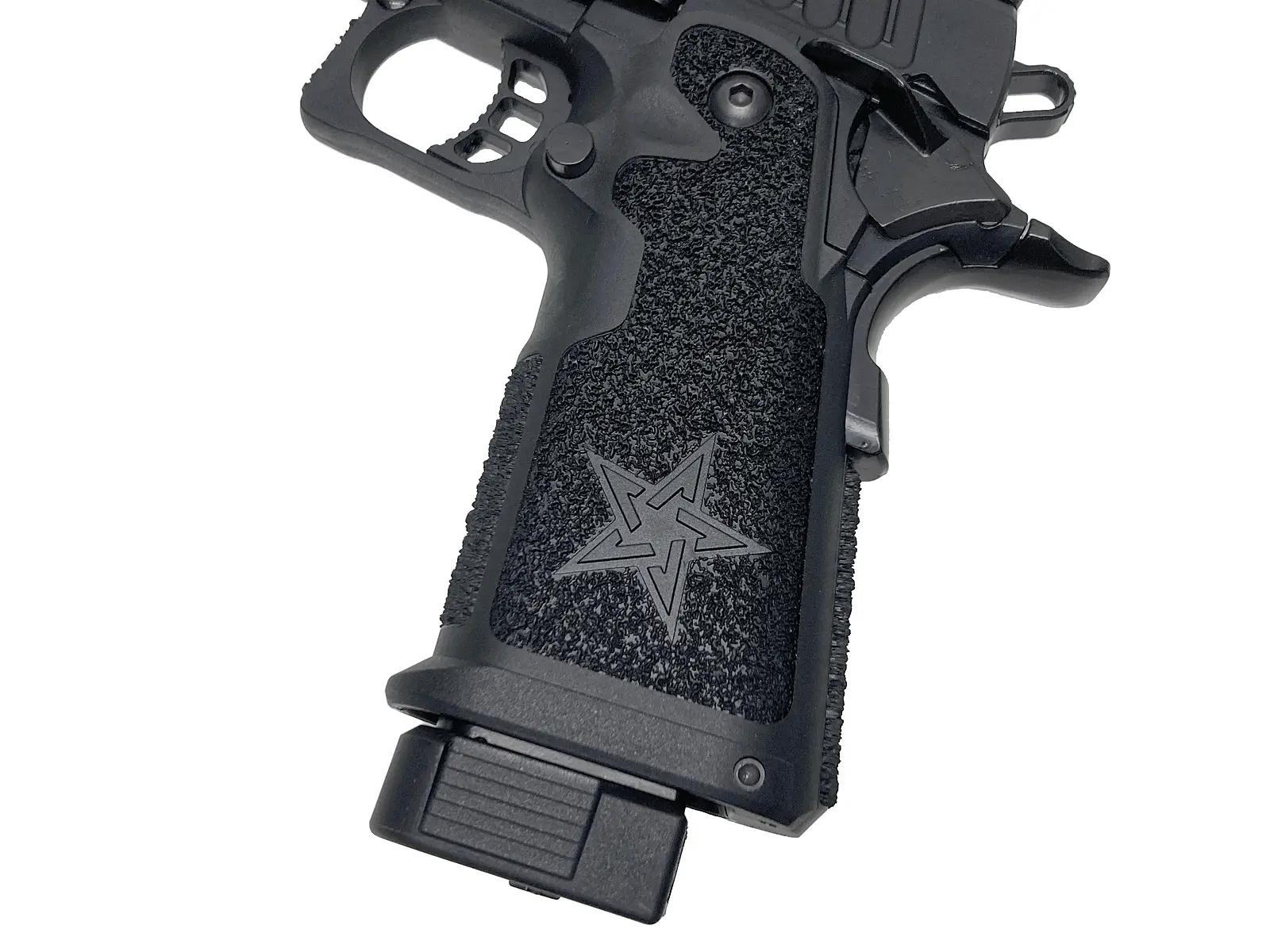 STACCATO社の正規ライセンスを取得し、現代の法執行機関が信頼を寄せるタクティカルピストルを精巧に再現。3.9インチのバレルを備えたC2は、取り回しの良さと凝縮されたメカニカルな美しさが際立つ。JP 2025Ver.ではスチール製パーツの採用により、作動の鋭さと耐久性が大幅に向上。ドットサイト装着への対応など、現代的なセットアップにも柔軟に応える。実銃の風格を忠実にトレースした、盤石の仕上がりだ。